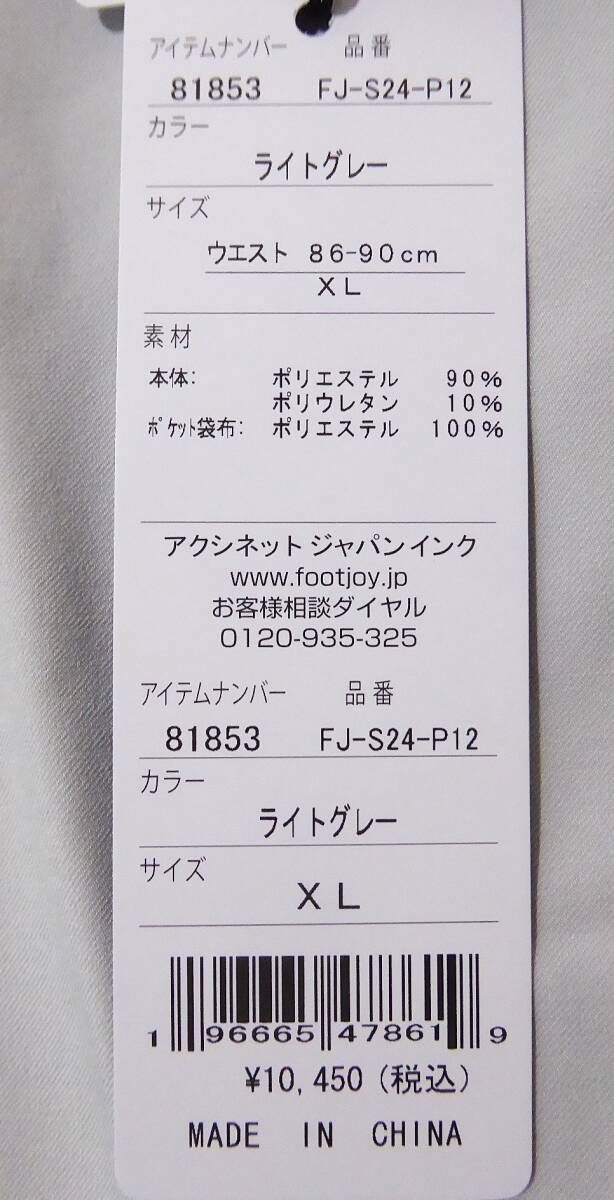 FOOTJOY GOLF フットジョイ ゴルフ ロゴ刺繍 軽量 撥水 吸汗速乾 ストレッチ スラックス ゴルフパンツ XL 薄灰