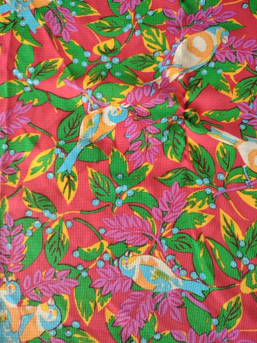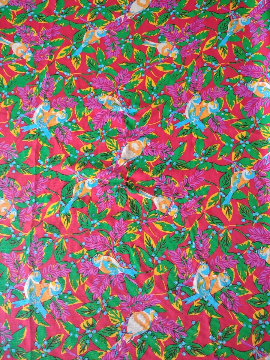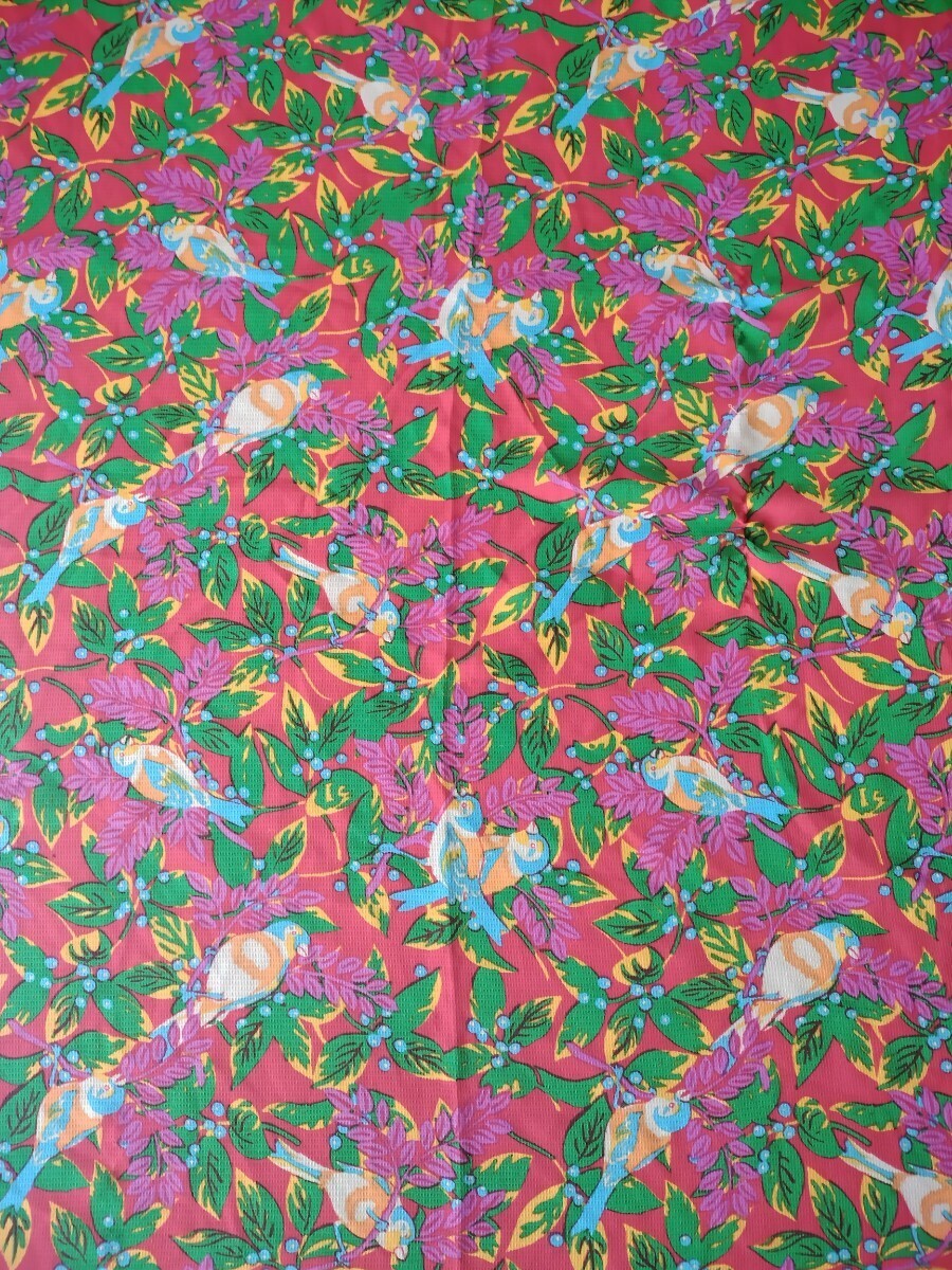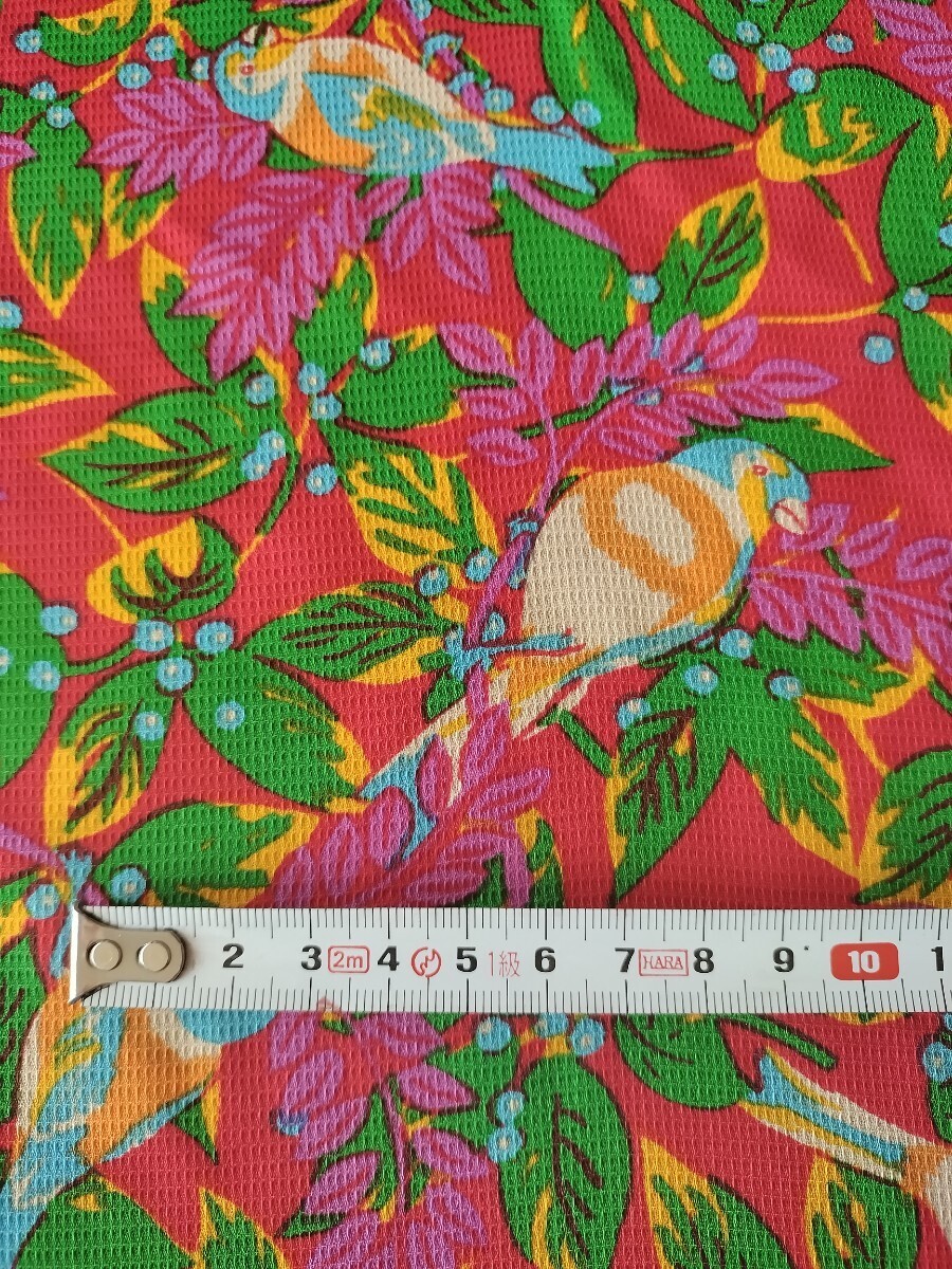 ローズレッド系の薄手で透け感のある柔らかい花柄生地です