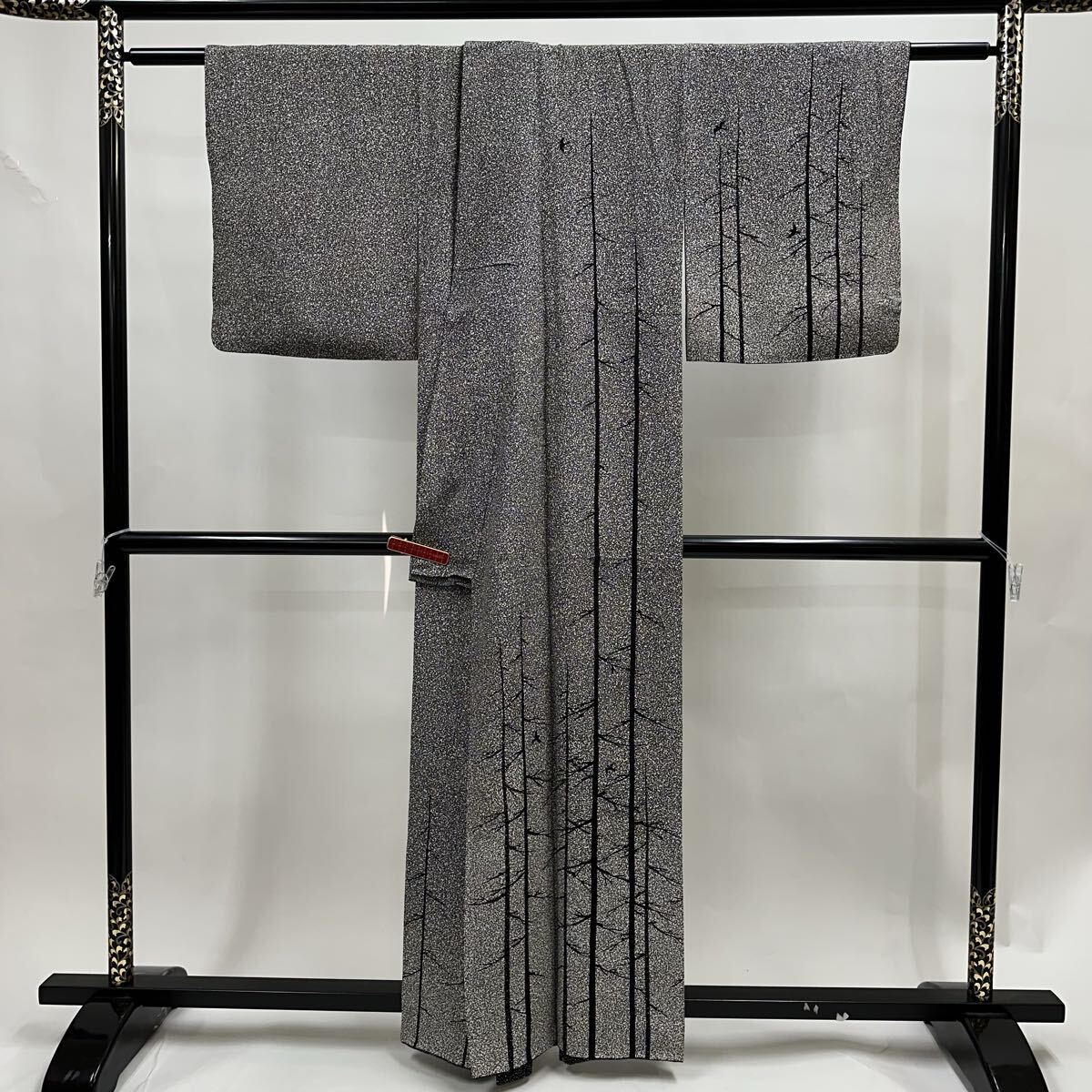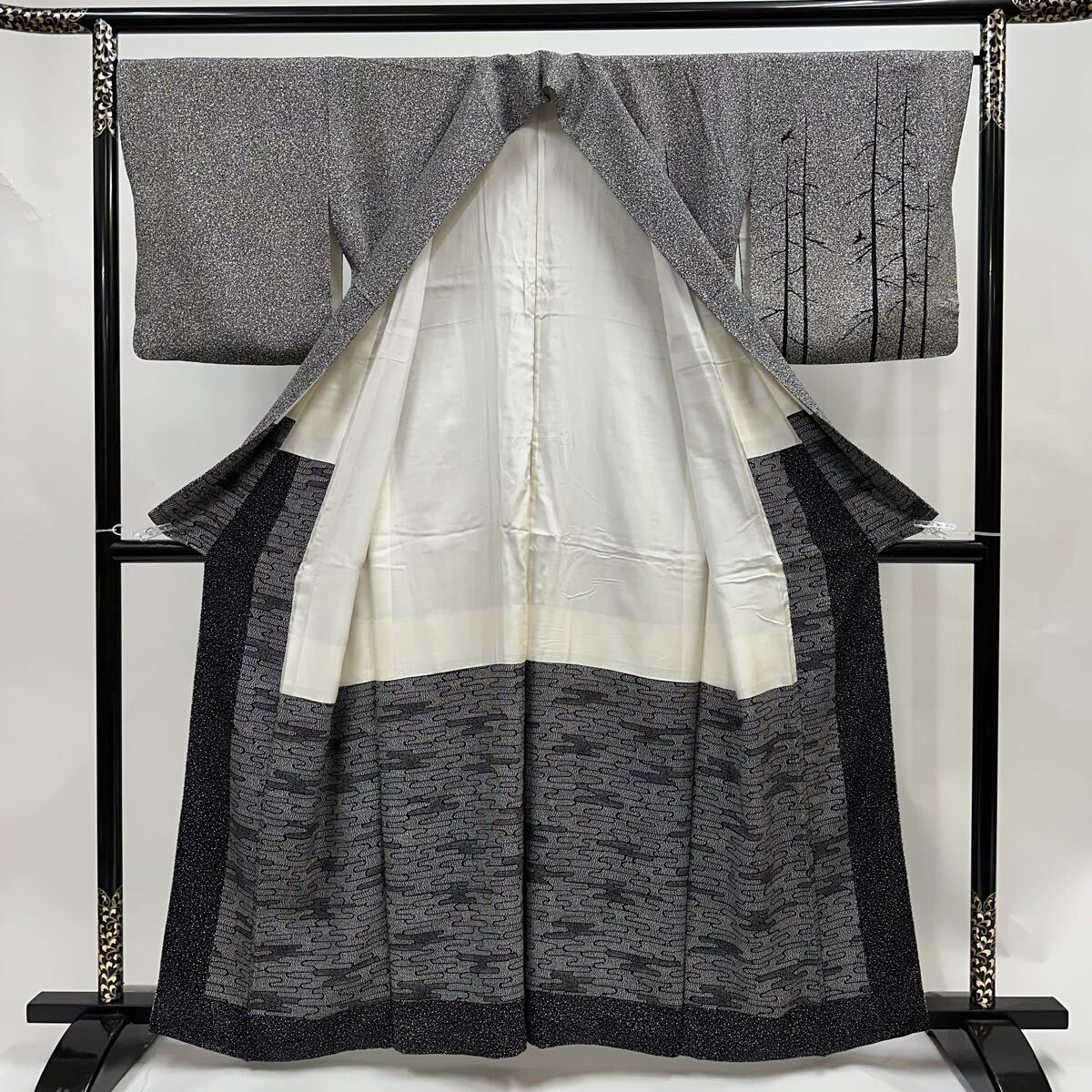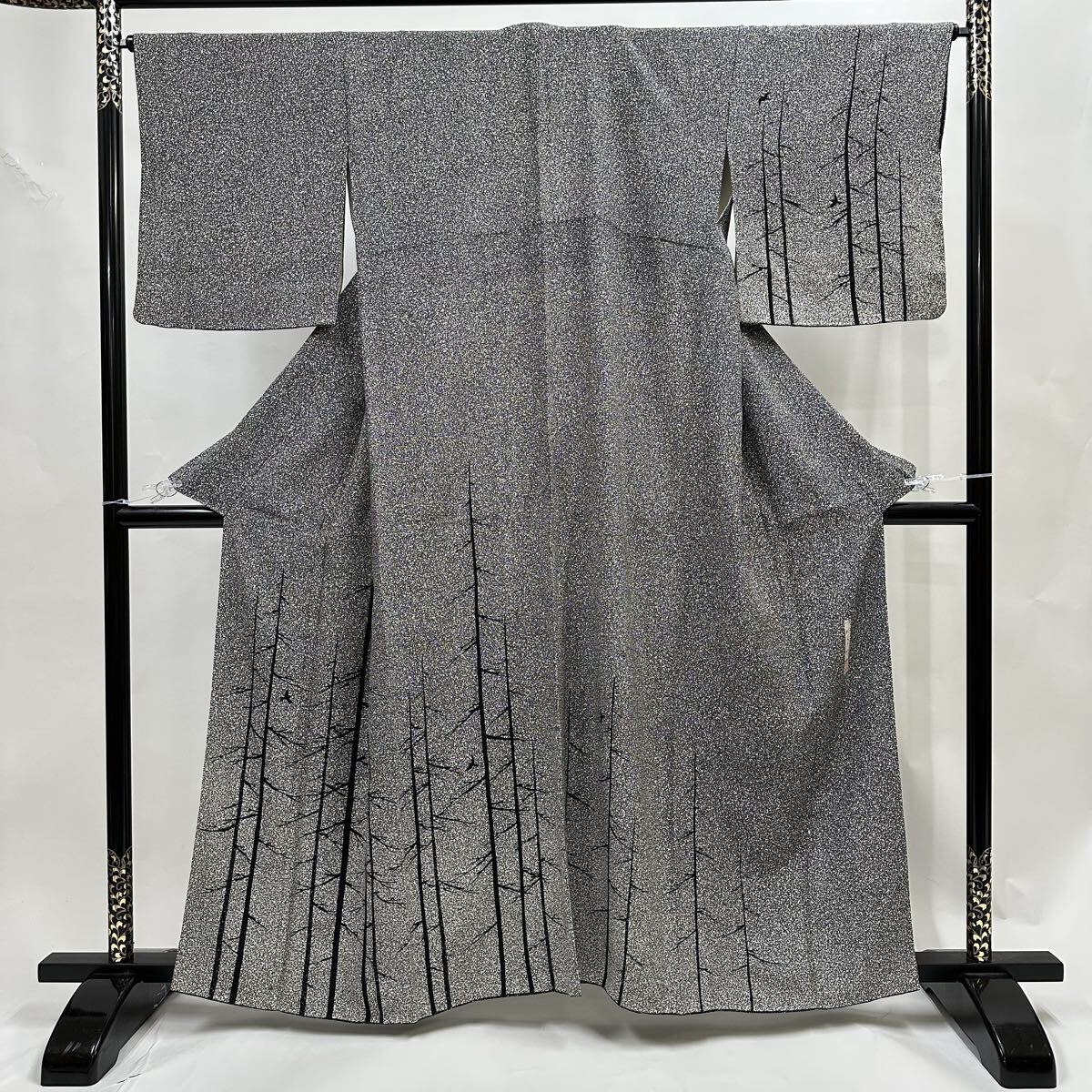 【七福】c828 正絹 訪問着 落款 京の名工友禅作家 川村久太郎 枝垂れ柳 モノトーン 袷 着物 仕立て上がり 逸品 身丈 約157.5cm 裄 約64.5cm