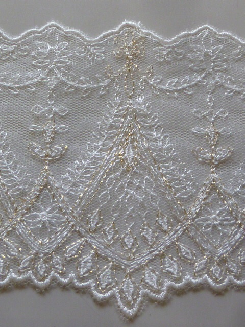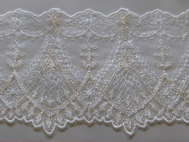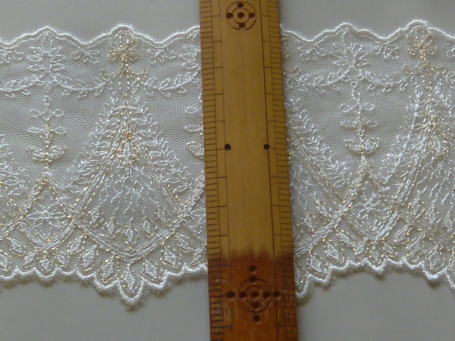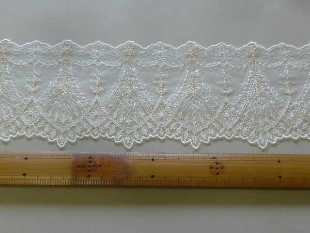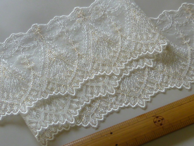 ※レーヨン/ナイロン 繊細なラメ入りエンブロイダリーレース かわいい草花柄 アイボリー 3.2m