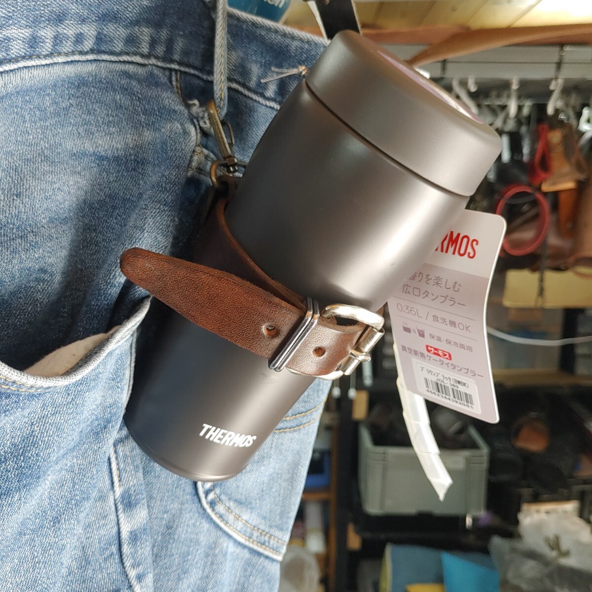 ズボンに取り付けたりカバンに取り付けたりできます。ベルトはサイズ調整できますのでいろんなタンブラー型で使用できるかと思います。