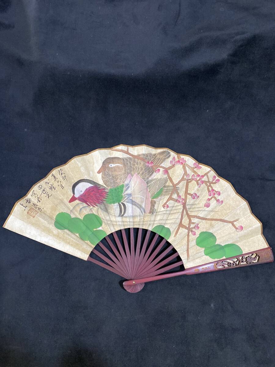 中国古画 手描 花鳥紋 扇子 巻物 宣紙 時代物 東洋彫刻 旧家蔵出し 唐物 中国古玩 古美術品