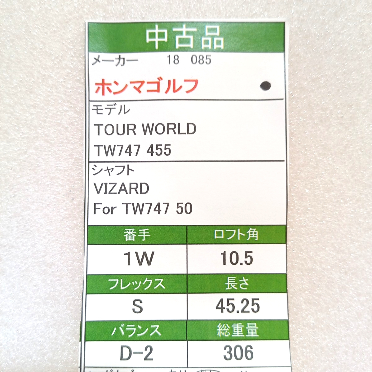 【即決価格】【1W】ホンマゴルフ/ツアーワールドTW747 455/10.5度/ VIZARD for TW747 50/FLEX S/カバー無し