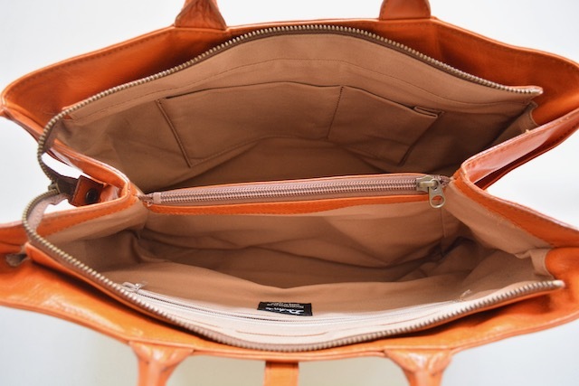 [発送方法/送料は下の方に記載しております。] A4サイズ収納可能。 普段使いや通勤用として、男女問わずにお持ちいただけるトートバッグです。 上部はベルト開閉 (内側) 真ん中に仕切りジップポケット ジップポケット1 オープンポケット2 あおりポケット1 (外側) 背面にジップポケット1 サイズ: 横36cm位 縦24cm マチ10cm位 ハンドル30cm (サイズについて) 実寸は平置きにて測りました。若干の誤差はご了承下さい。 重 さ:780g 素 材:レザー カラー:明るい茶系 (画像の色ついて) PC・モバイル環境によって、また個々の色に関する認識にも個人差があります。 色表現は言葉でも写真撮影でもとても難しく、実際のお色と全く同じようには表現するには限界がありますことをご了承下さい。 状 態: 多少の擦れや薄汚れ程度はありますが、目立つようなキズはありません。 まだまだ長くお使いいただけると思います。 * 気づいた点があれば記載させていただいておりますが、中古状態(ダメージ、匂い等々)に対する判断は個々に違います。USEDをご理解の上でご検討ください。 * 取り置き・同梱発送も承ります。(取り置きは最初の落札から5日まで。複数ですと発送方法/送料が変わる可能性があります。 |