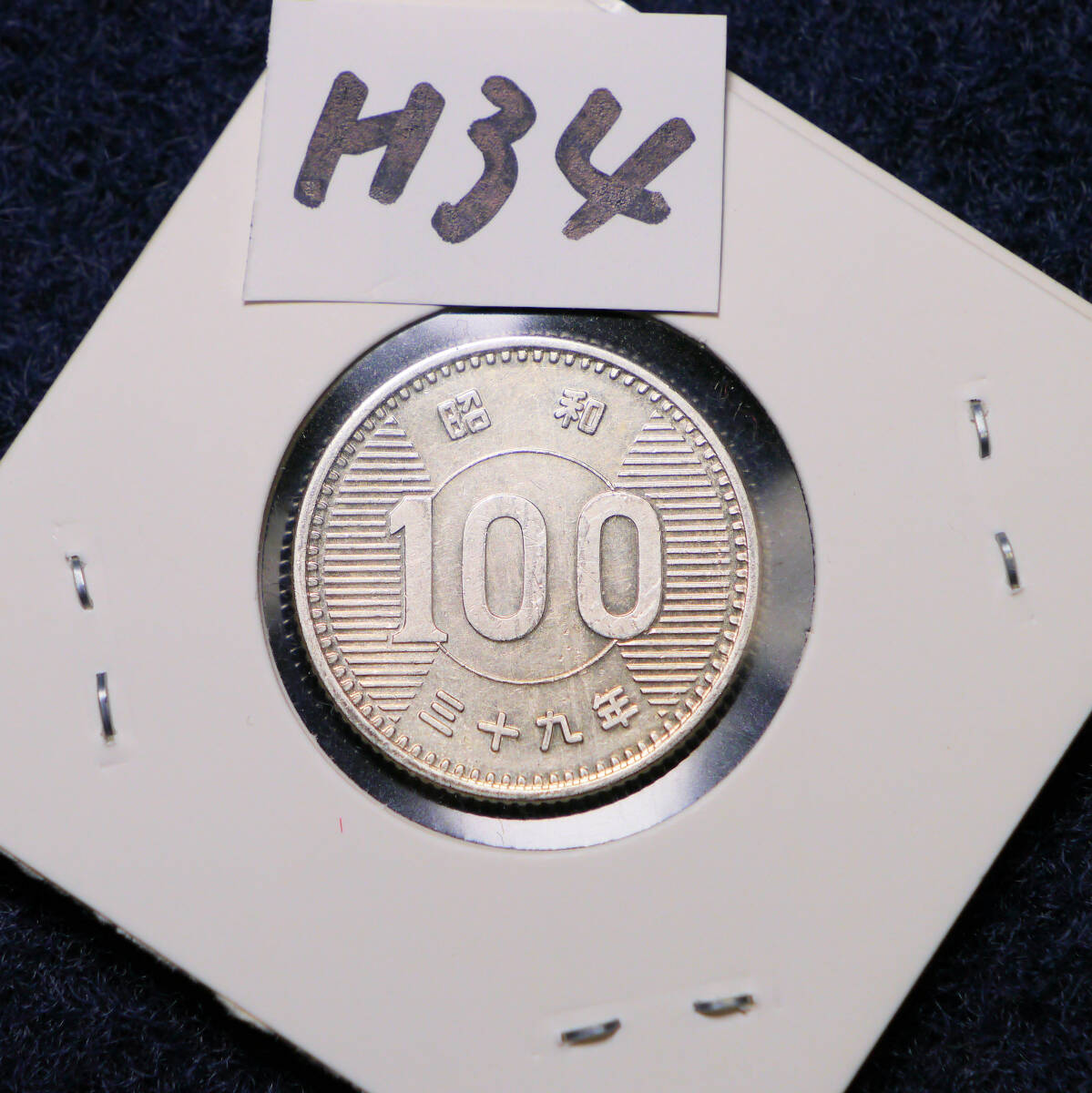 ■ 未流通品 極美品 旧百円硬貨 昭和39年 デザイン稲穂 発行枚数希少特年(商品識別H34)