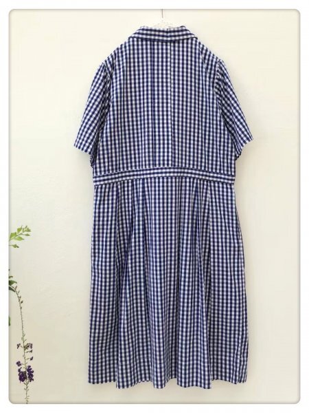 SM2 ワンピース フリーサイズ ゆったり 大人可愛デザイン チェック柄 高質 綿100% ナチュラル 通気性肌触り抜群 ネイビー