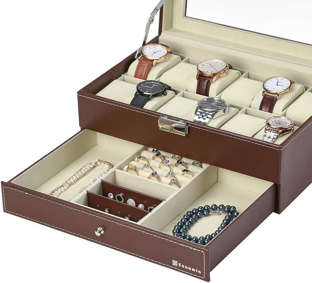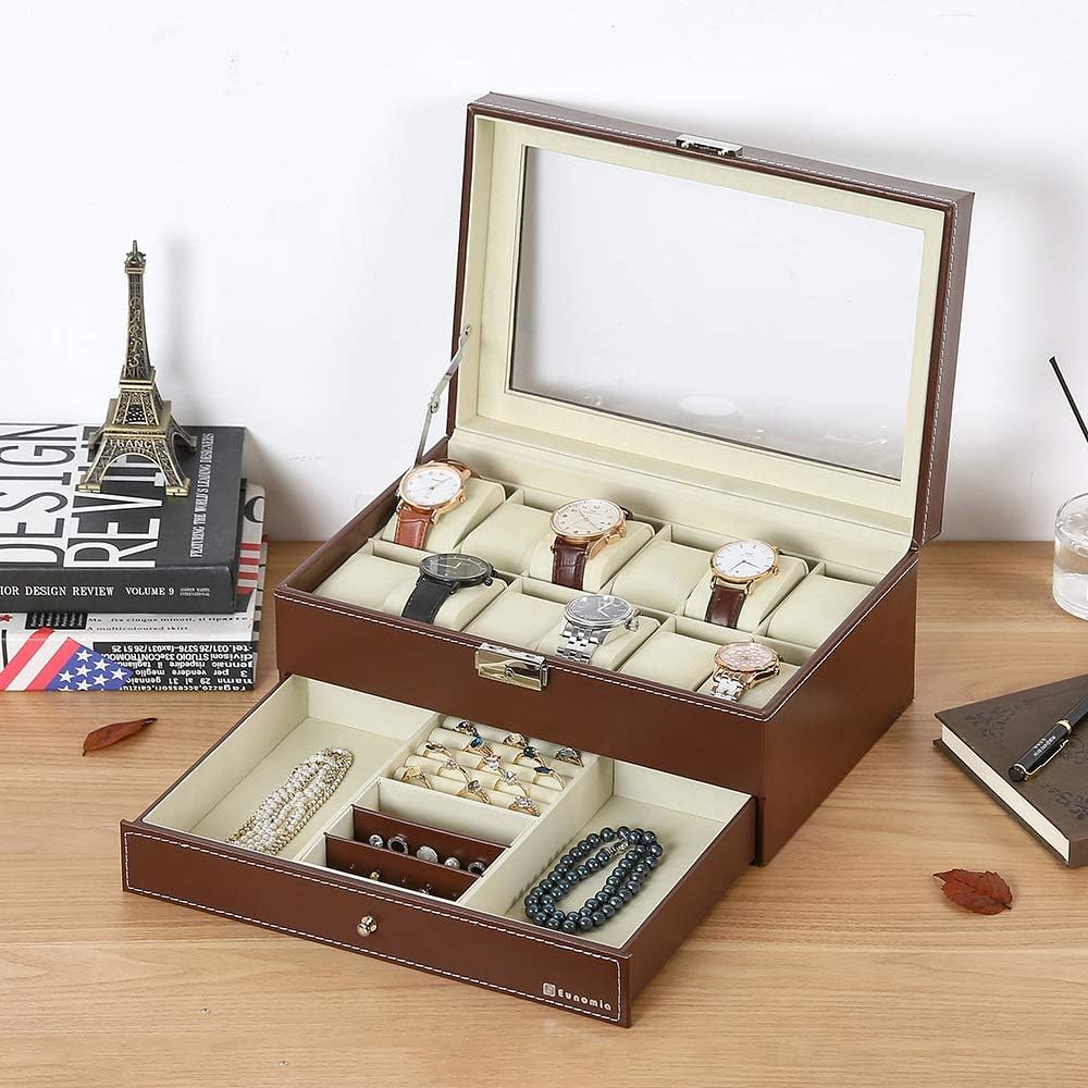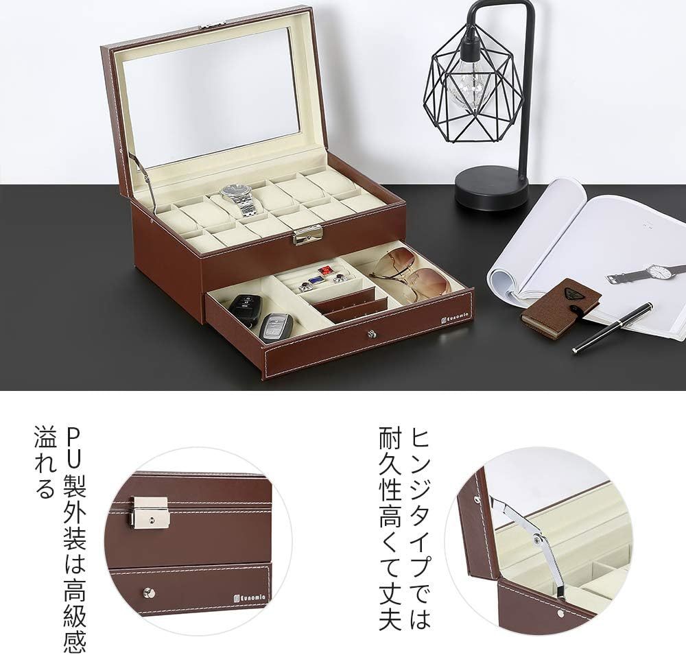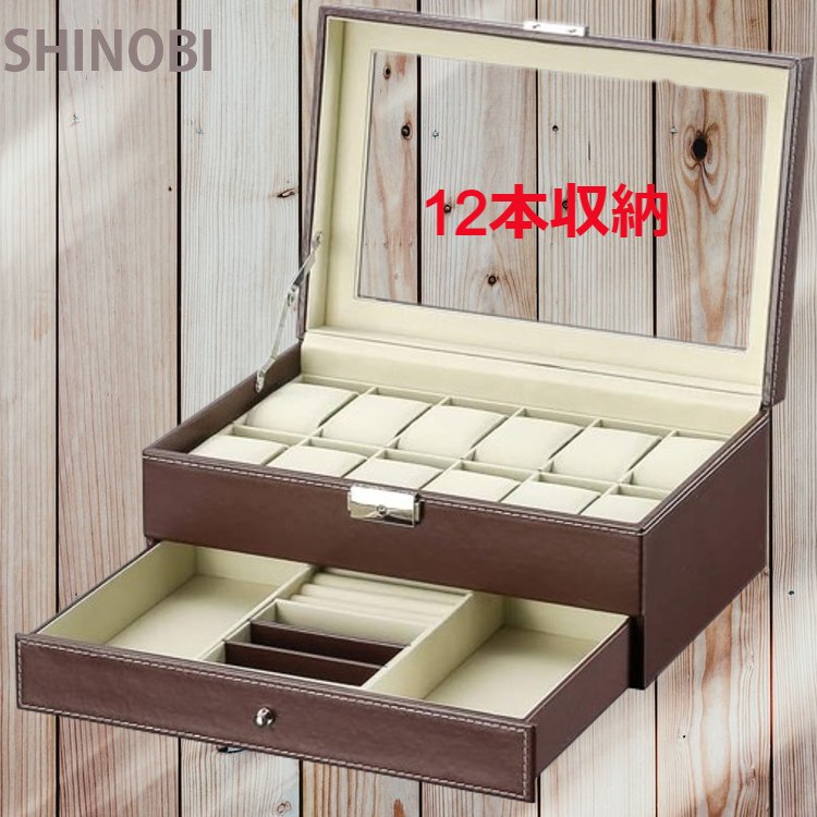 腕時計収納ケースは、12本の腕時計を収納できる2段式のアクセサリー収納ボックスです。