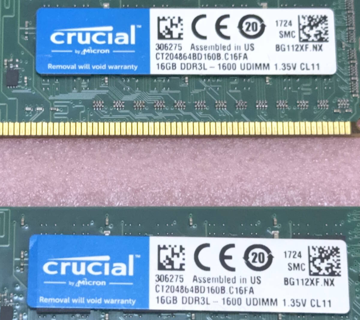 ◆Crucial CT204864BD160B 2枚セット *PC3L-12800U/DDR3L-1600 Micronチップ 240Pin DDR3 UDIMM 32GB(16GB x2) 動作品