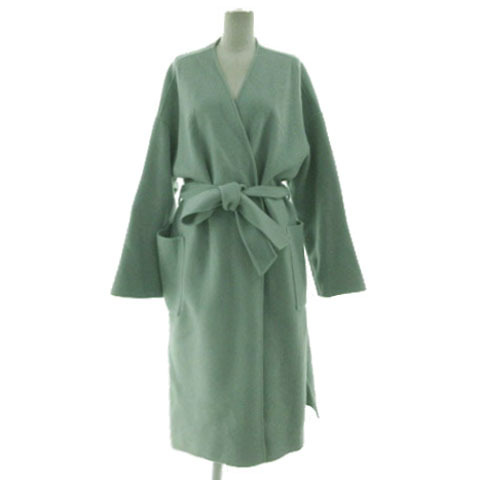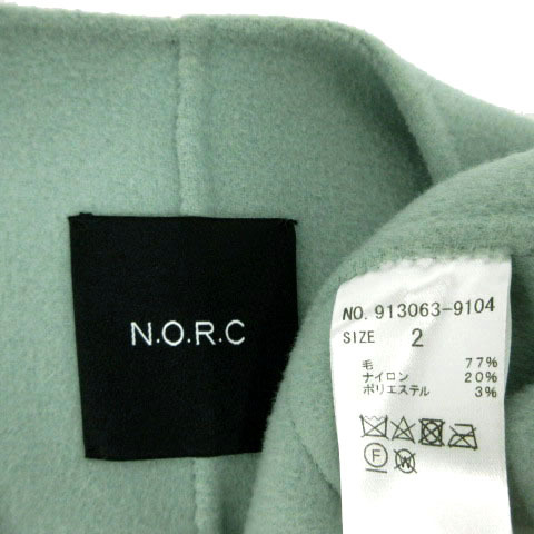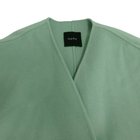 ノーク N.O.R.C NORC ノーカラーリバーウールコート 913063-9104 ロング 裾スリット リボンベルト 起毛 ウール混 ミントグリーン 2