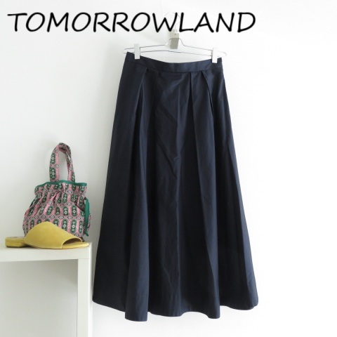 送料込 匿名配送 難有 TOMORROWLAND トゥモローランド ロングスカート 紺 34サイズ