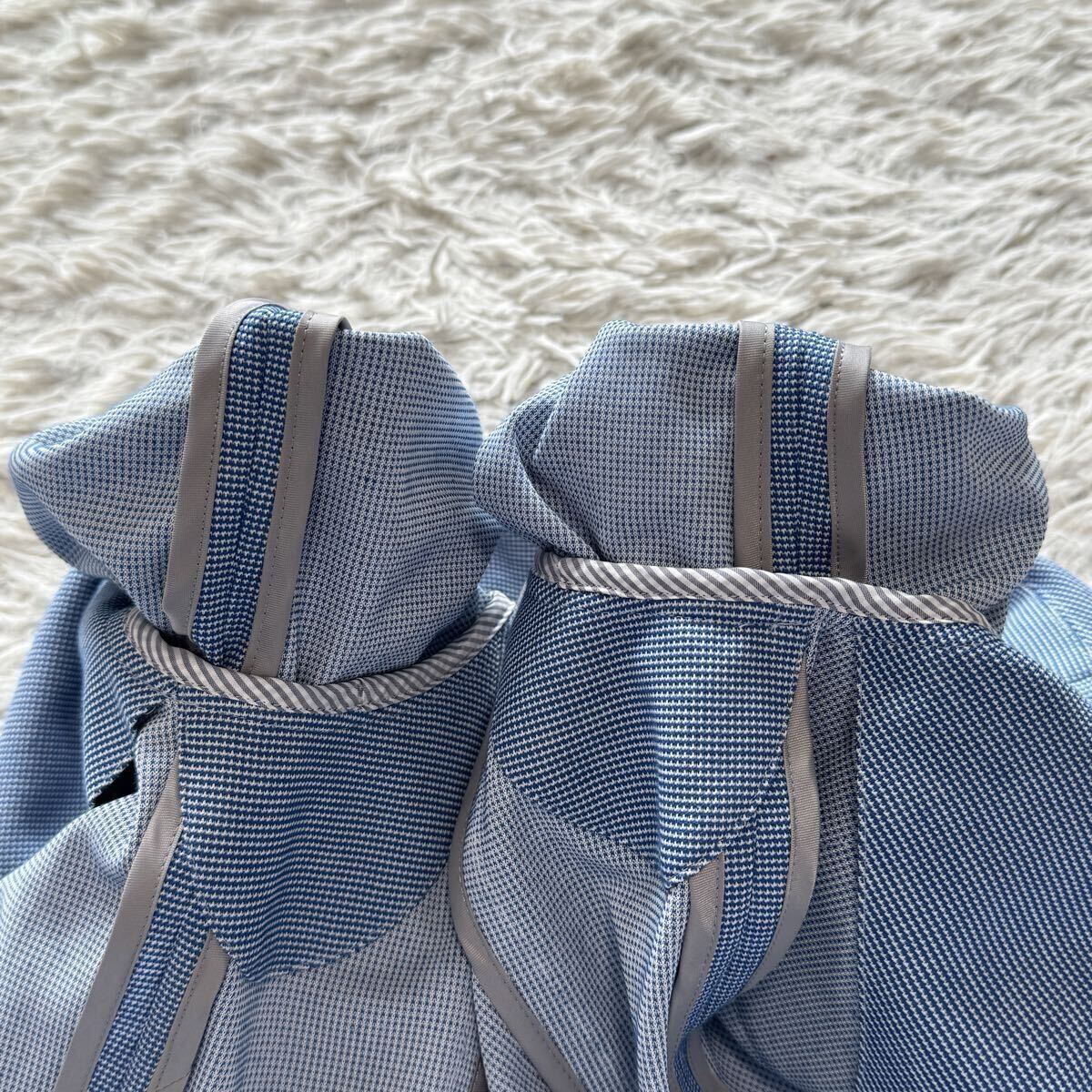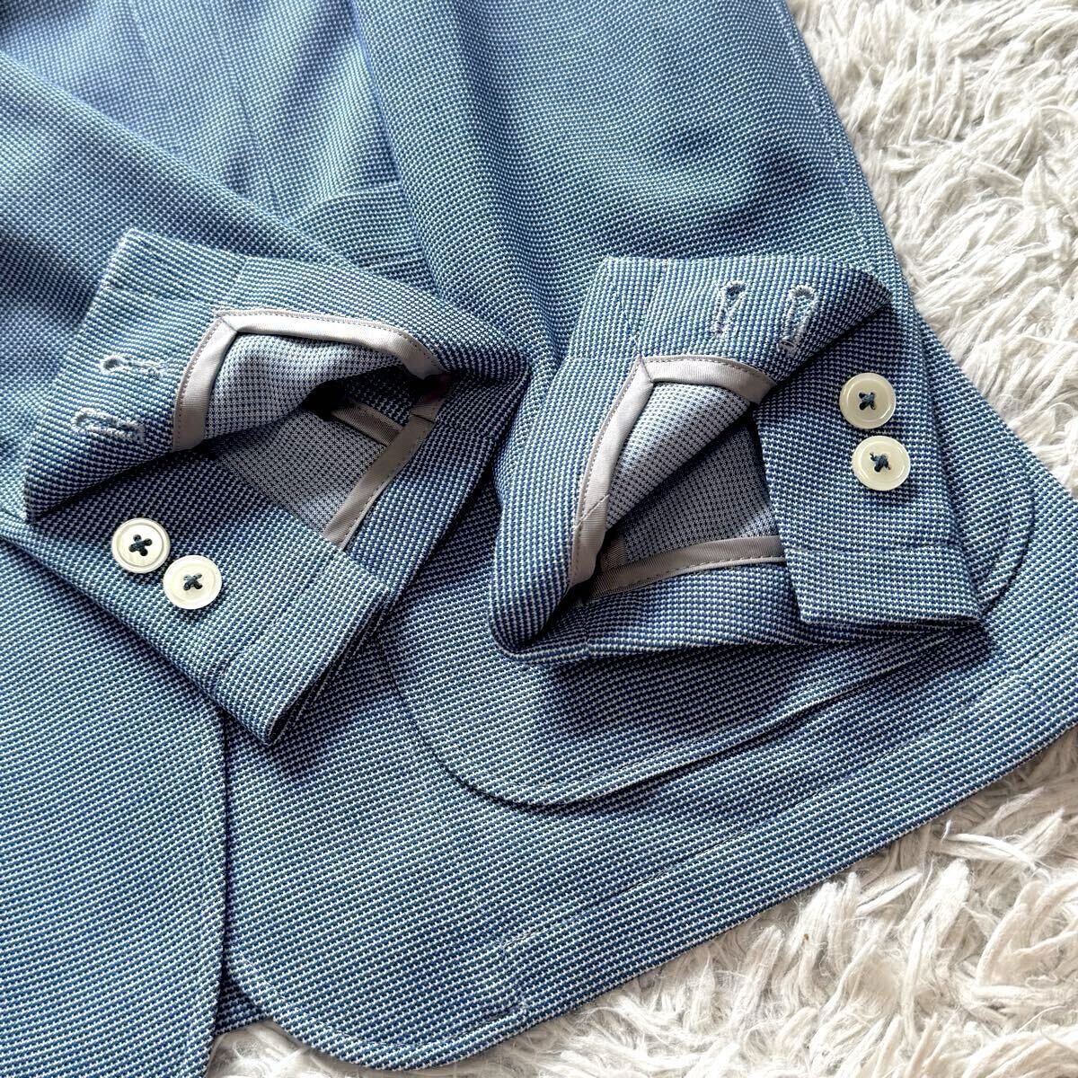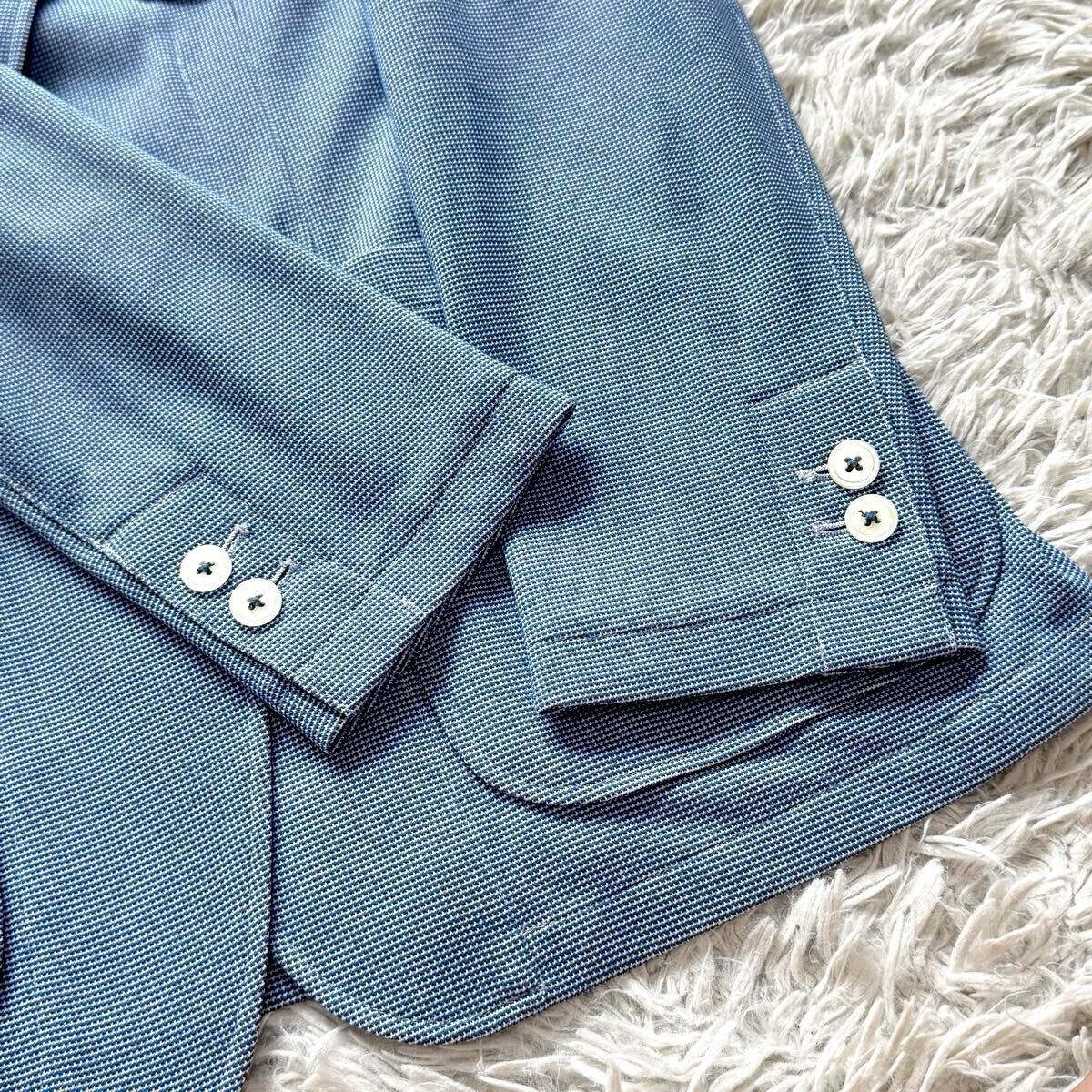ストレッチ性抜群のジャージー生地で鮮やかなスカイブルーが映える、高級感のある逸品です。