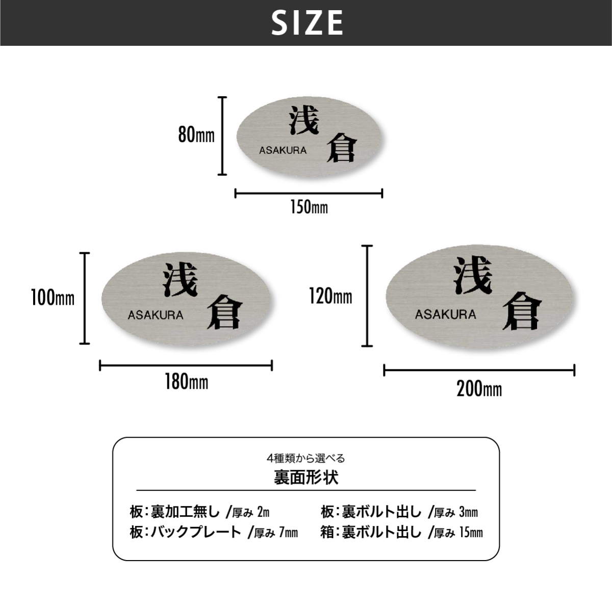 商品サイズ | ●サイズ 150×80mm 180×100mm 200×120mm ●厚み 裏加工無し/2mm バックプレート/7mm 裏ボルト出し(板)/3mm 裏ボルト出し(箱)/15mm |