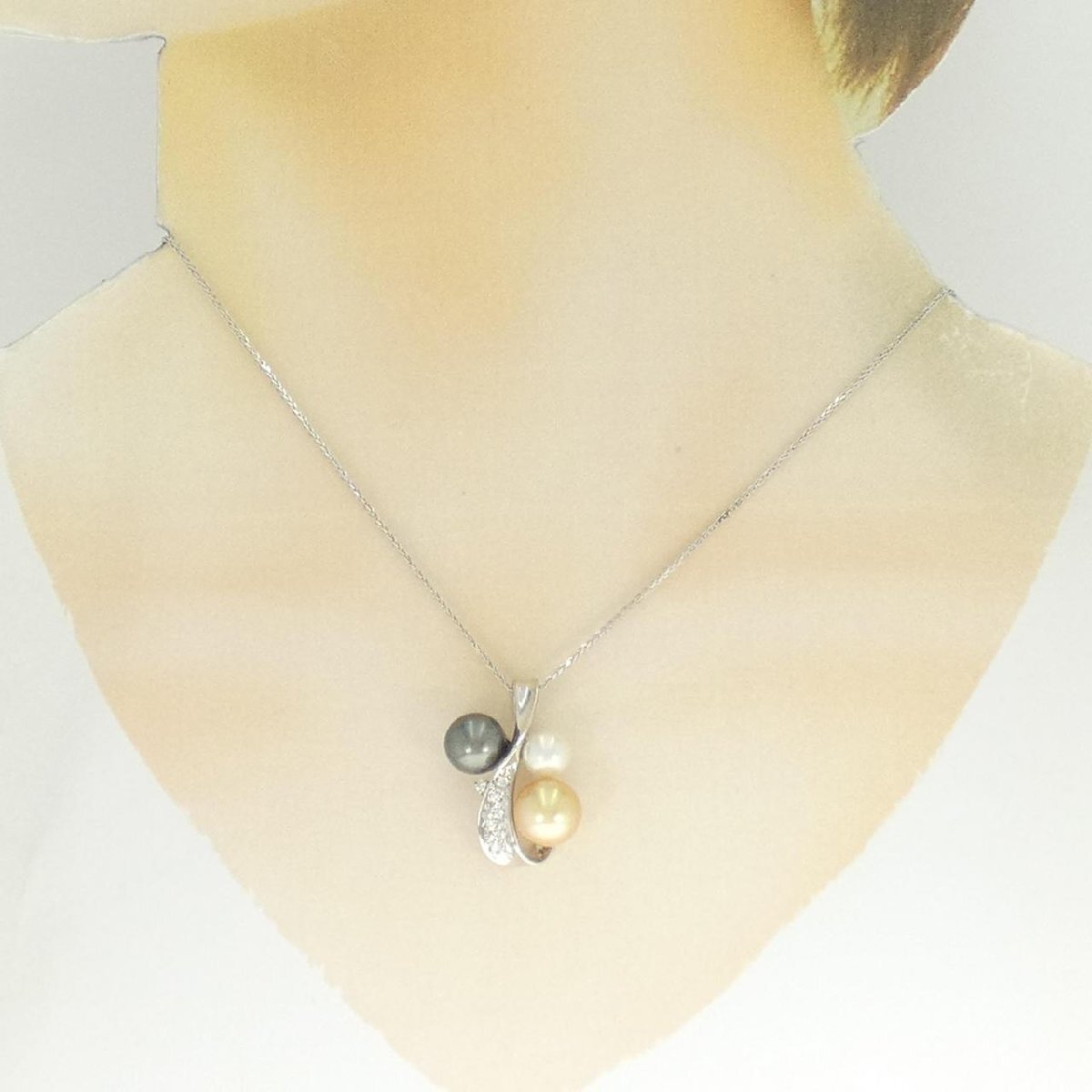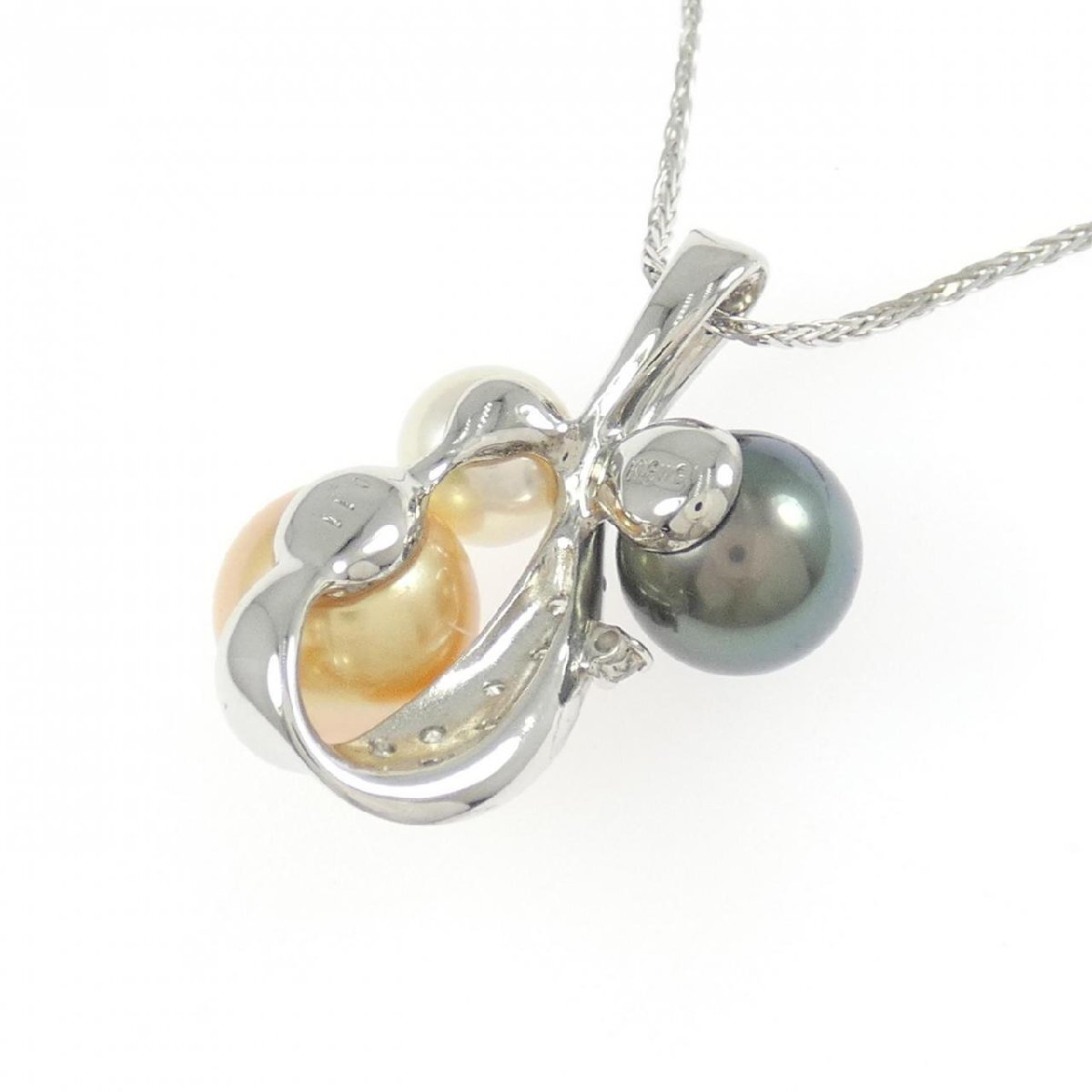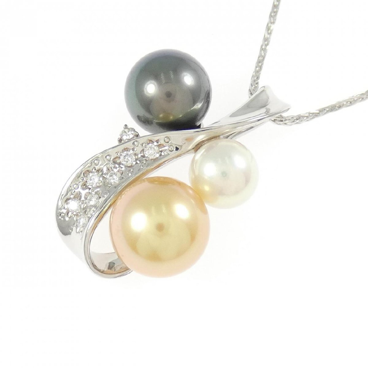 艶やかなアコヤパール、白蝶パール、黒蝶パールをあしらったネックレス。眩く輝くダイヤモンドと共に胸元を品良く飾ります。