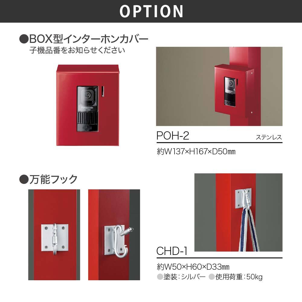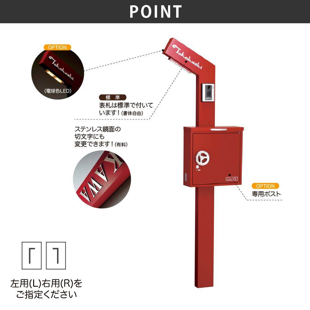商品詳細 | オプションで照明やインターホン、ポストが取付けられます。 門柱のカラーと向きをカスタマイズできます。 ※本体にポストを取付けの際には専用取付金具(無償)が必要です。 ※インターホンやポストは含みません。 |