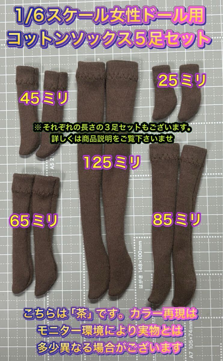 リカちゃん、ジェニー、ネオブライス、アイシードール 、オビツ27女性ボディ、ハッシュタグボディなどが着用出来る、ごくシンプルな綿のソックス長さ違い、平置きで約125ミリ、85ミリ、65ミリ、45ミリ、25ミリの5足セットです。