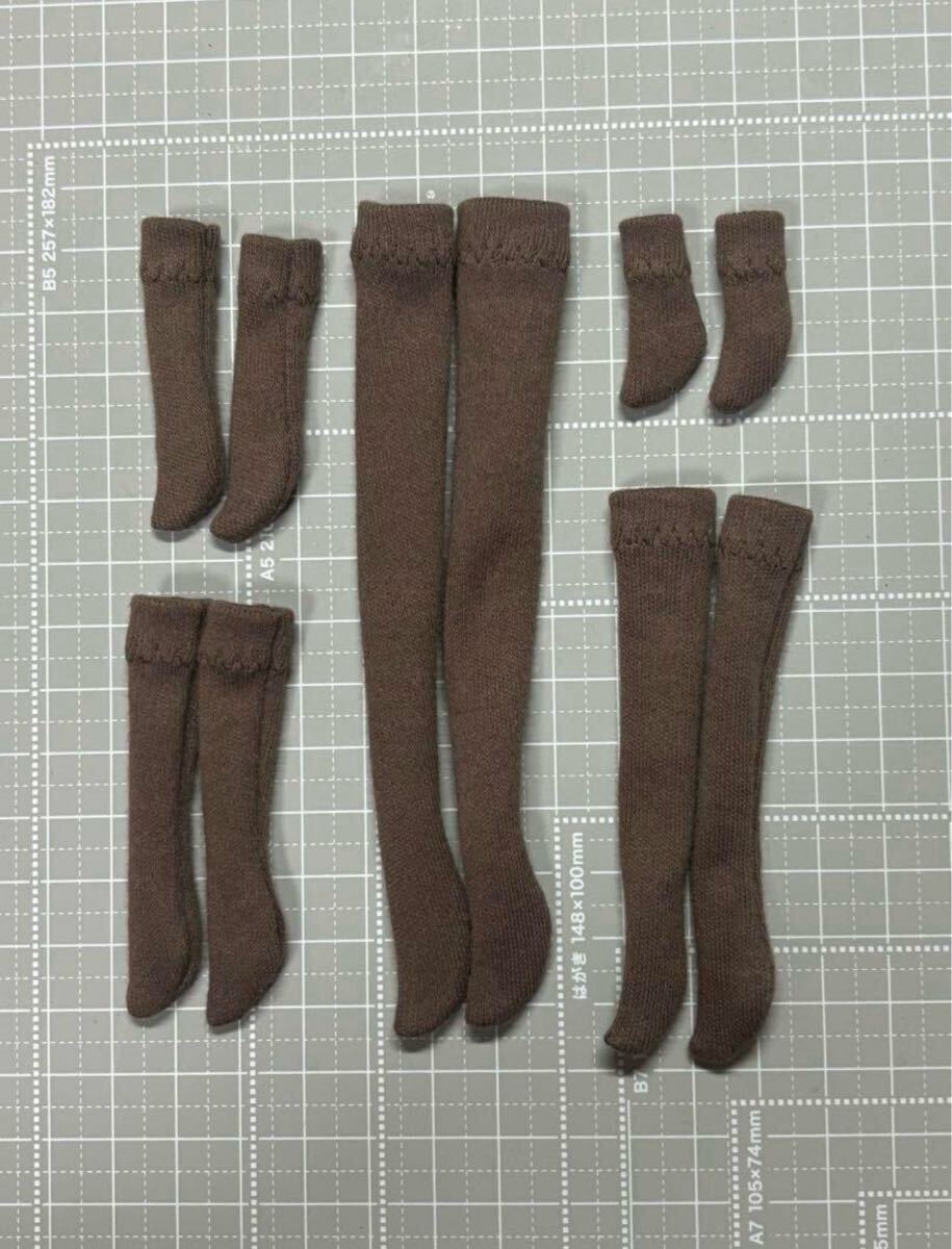 足にピッタリ沿うブカブカ感の無い型に作ってありますので、長いソックスだと特に、ドールの足が綺麗に映えると思います。