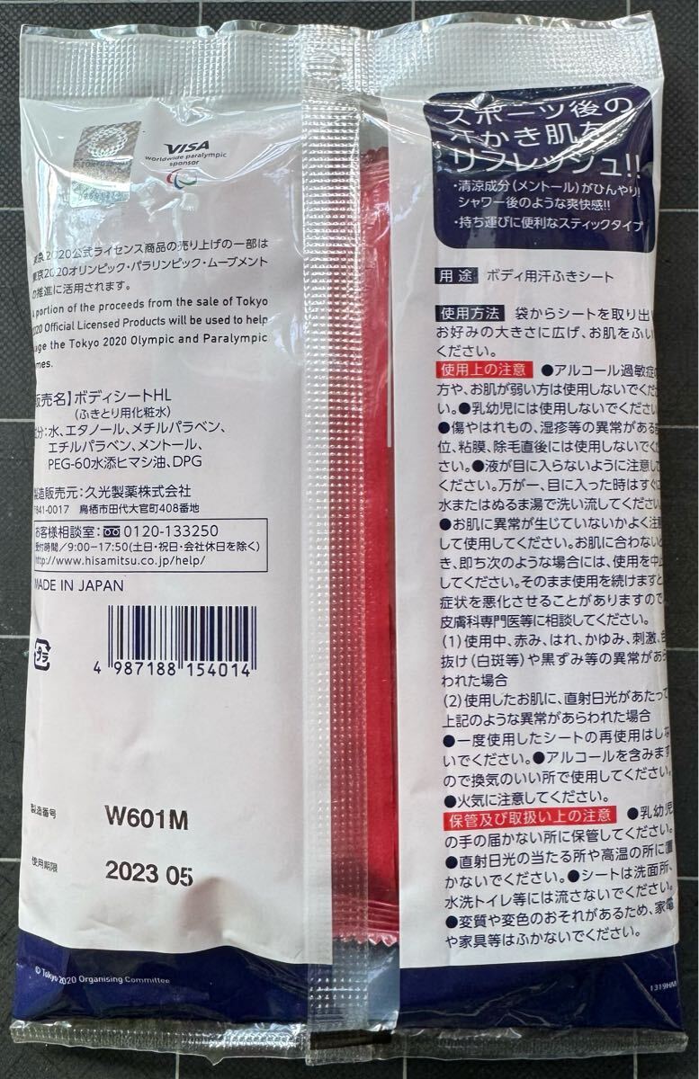 東京2020公式ライセンス商品 リフレッシュボディシート スティックタイプ 超特大 49×25cm 5本入 (東京2020オリンピックエンブレム)