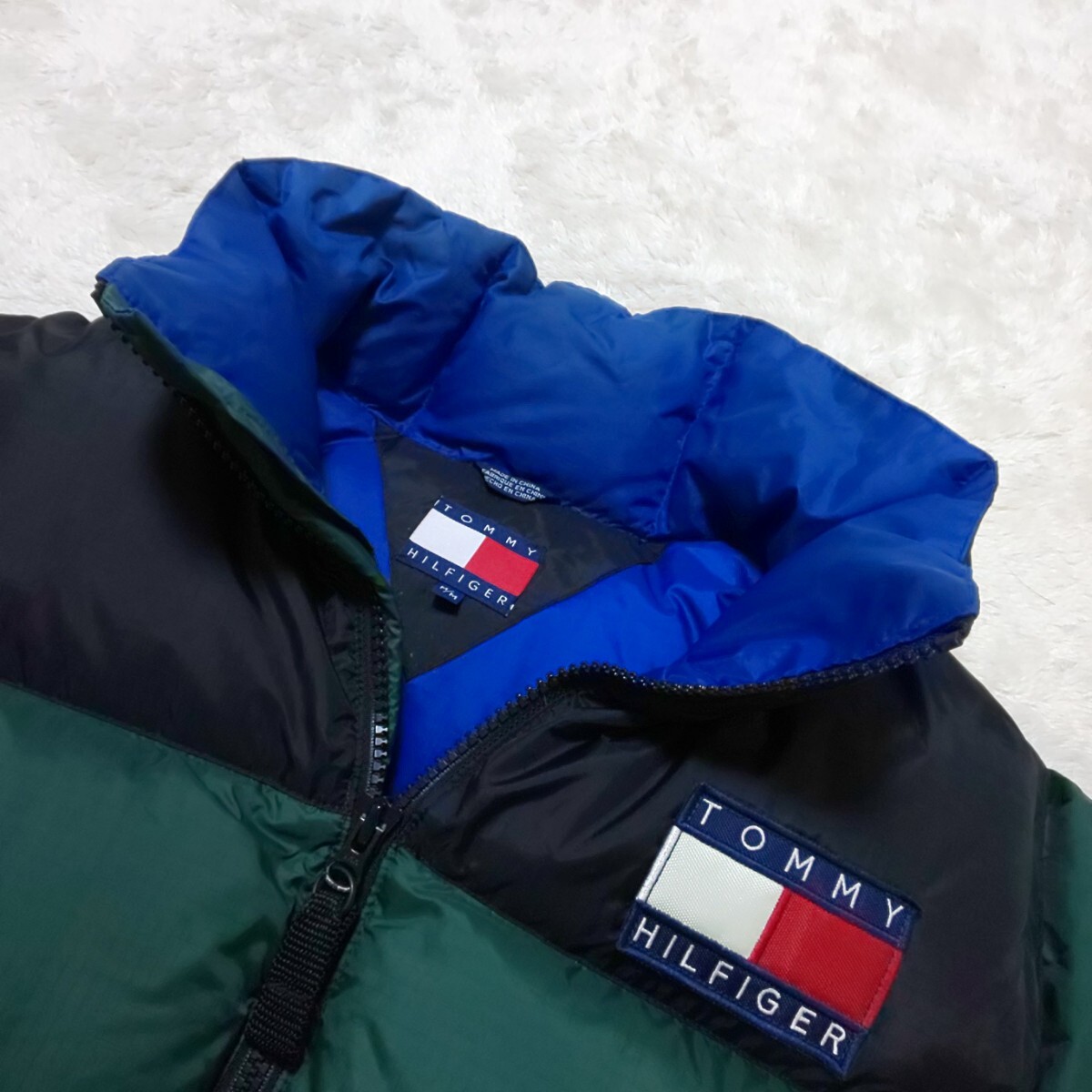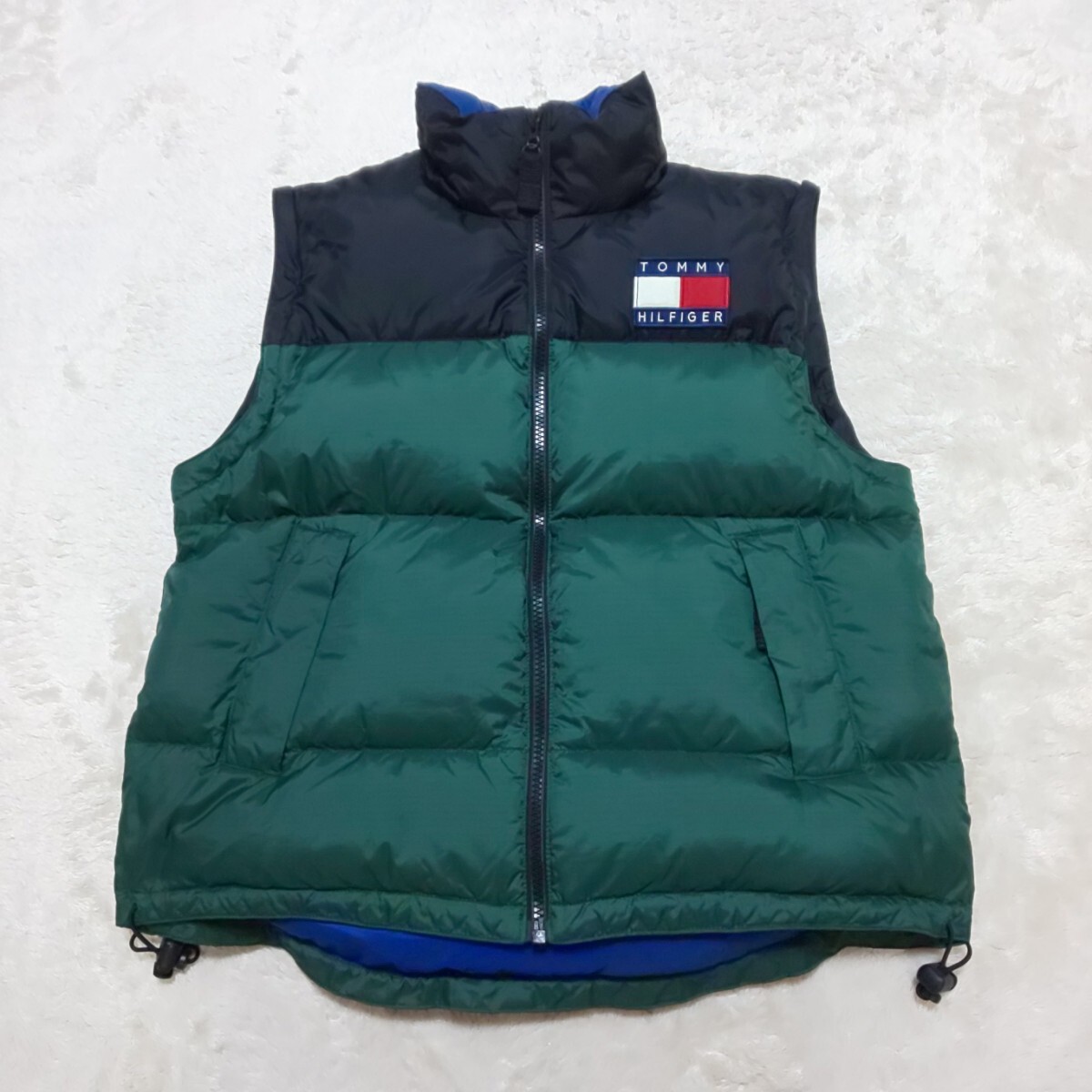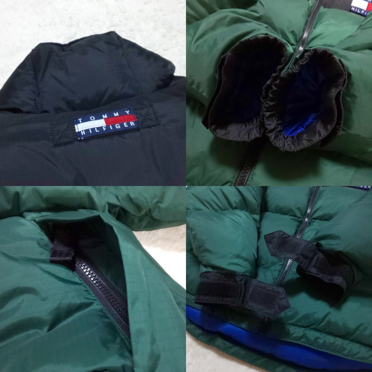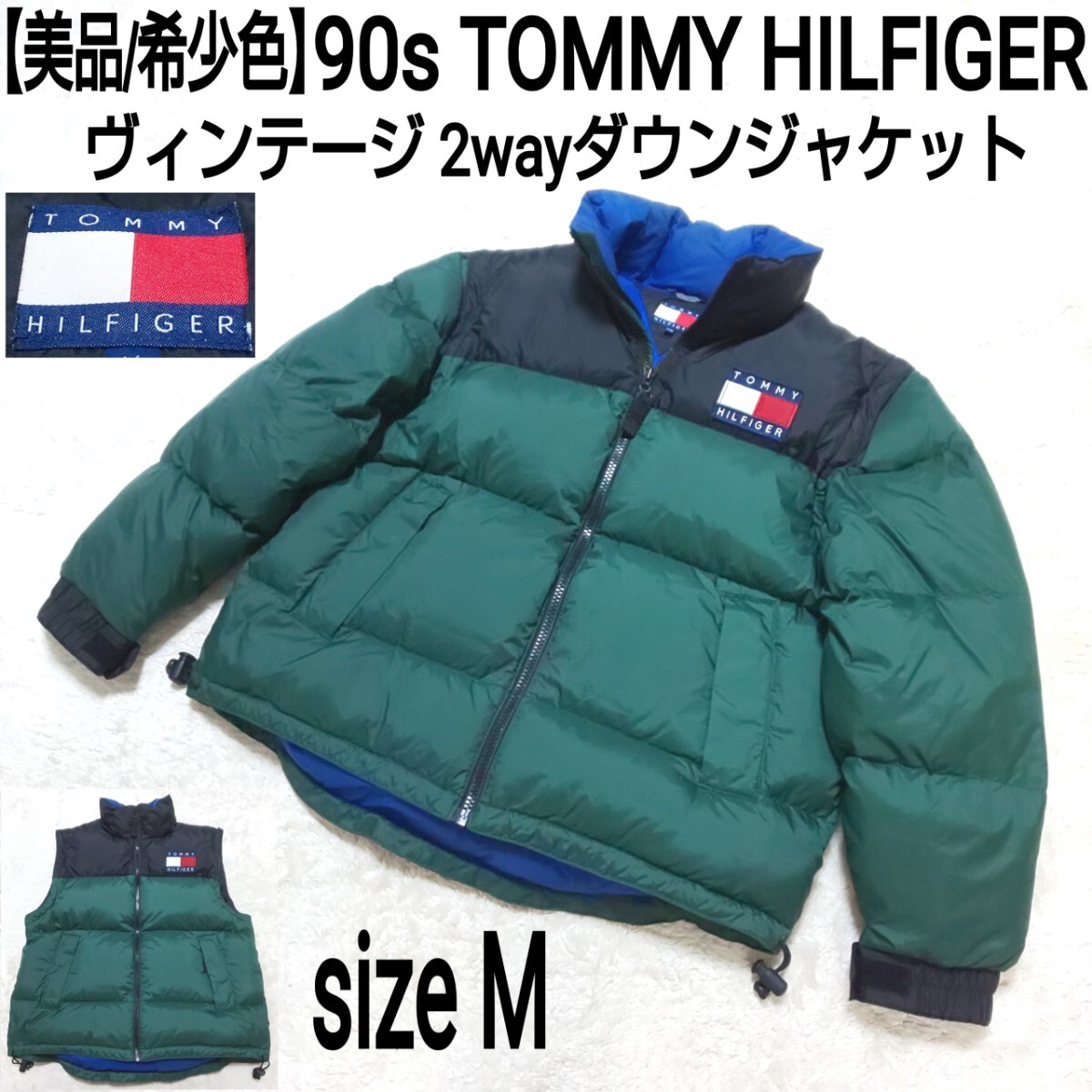 【美品/希少色】90s TOMMY HILFIGER トミーヒルフィガー ヴィンテージ 2wayダウンジャケット ダウンベスト 刺繍パッチ 肉厚 グリーン×ブラック
