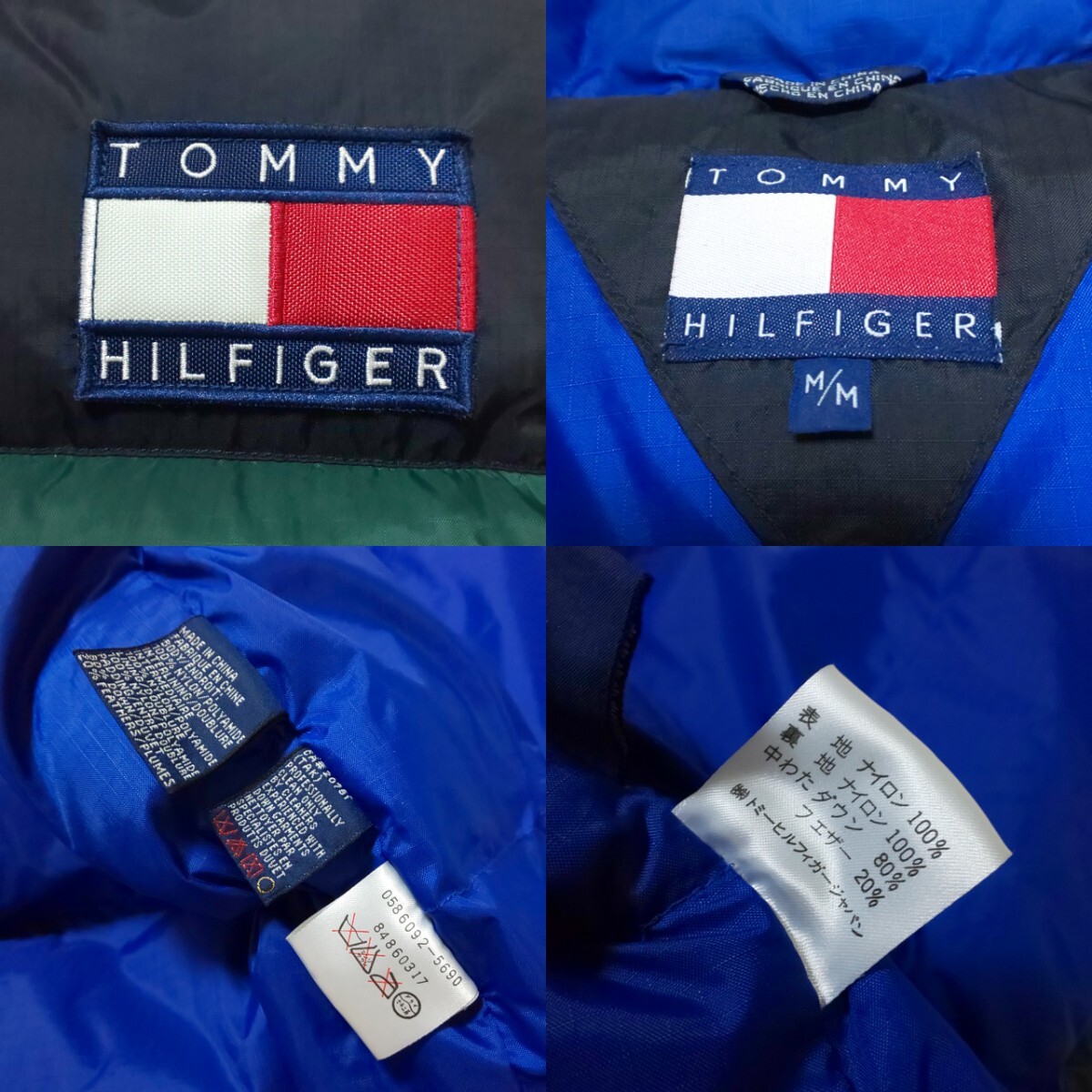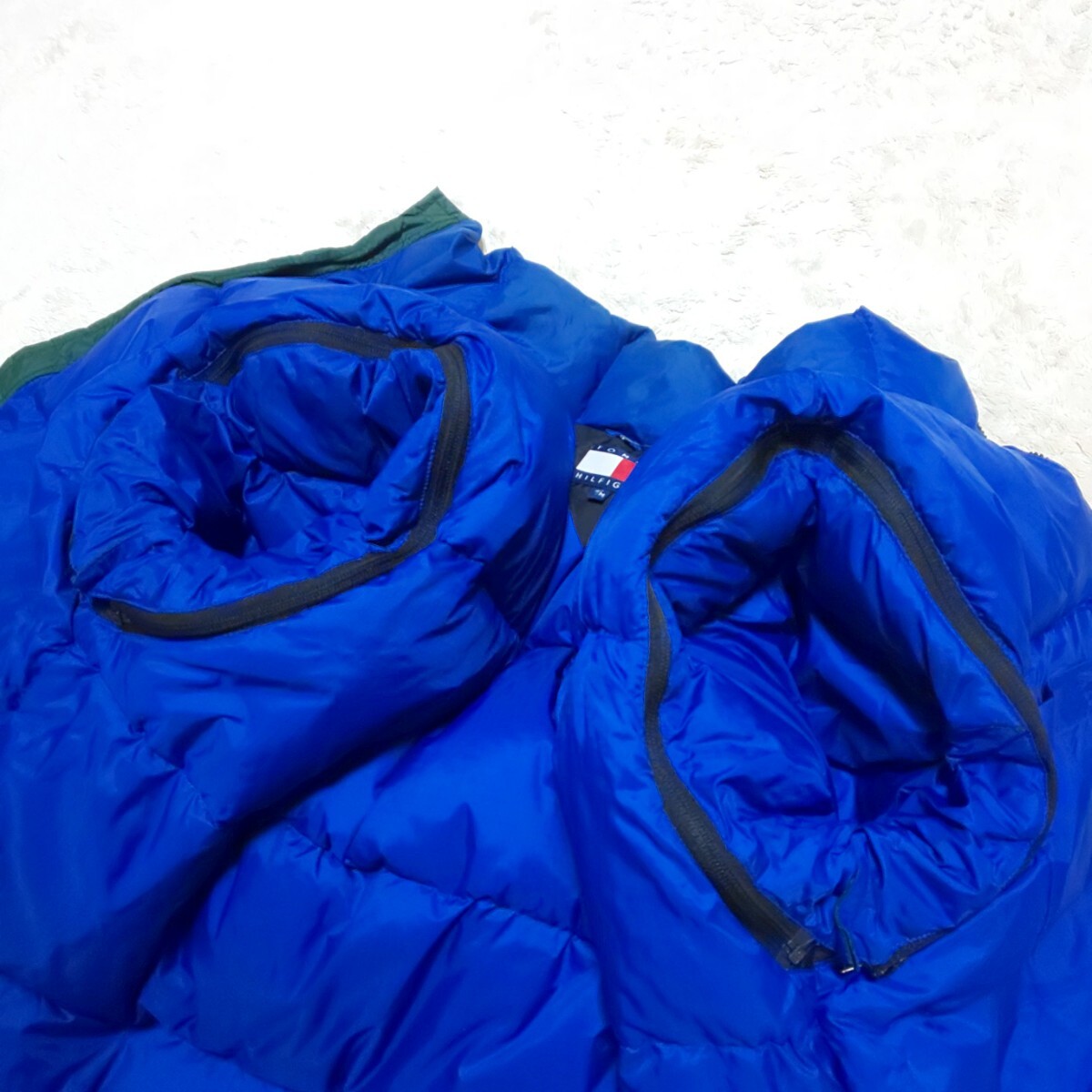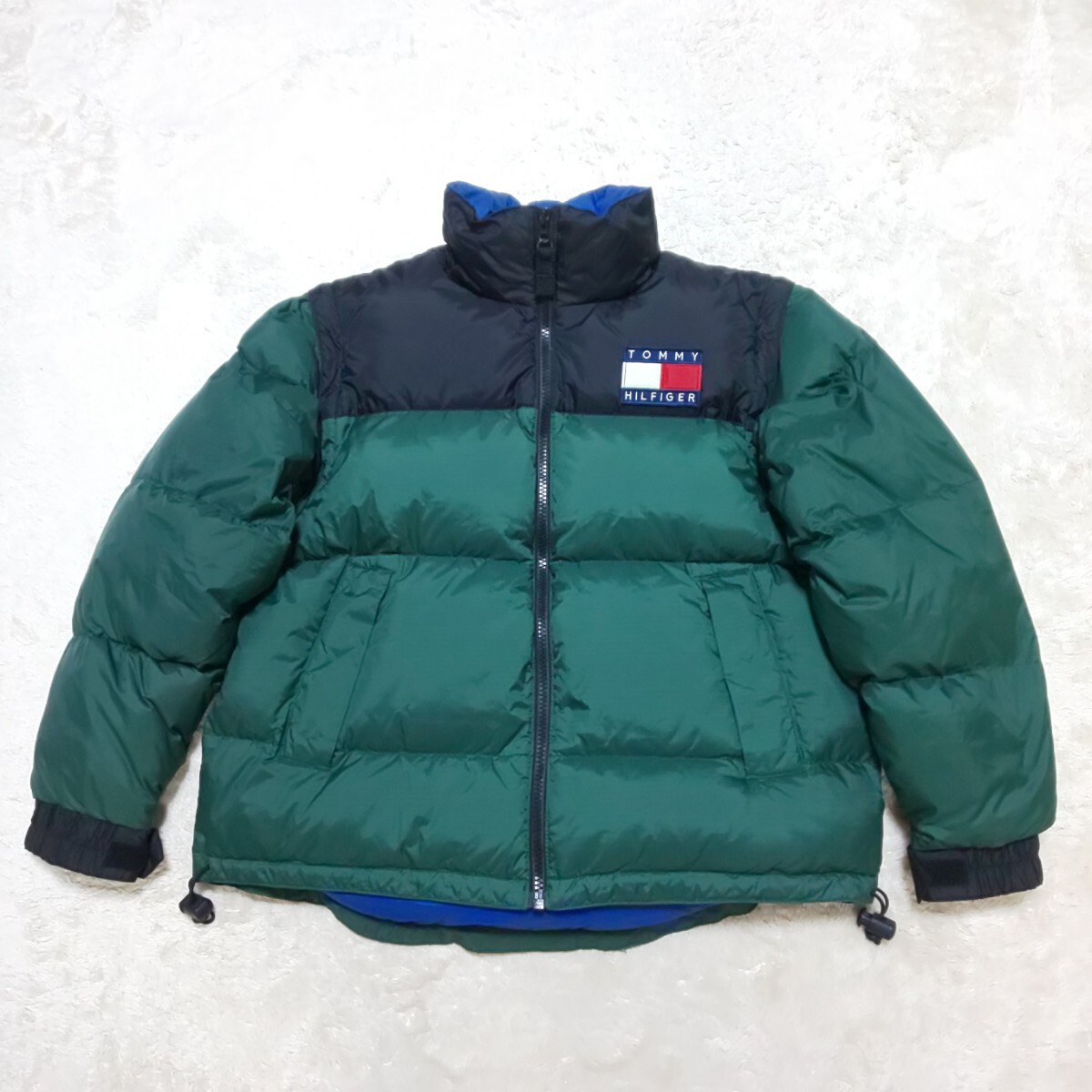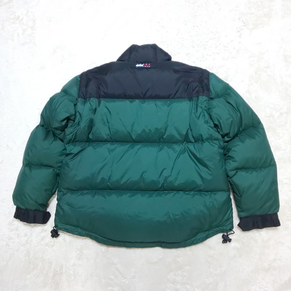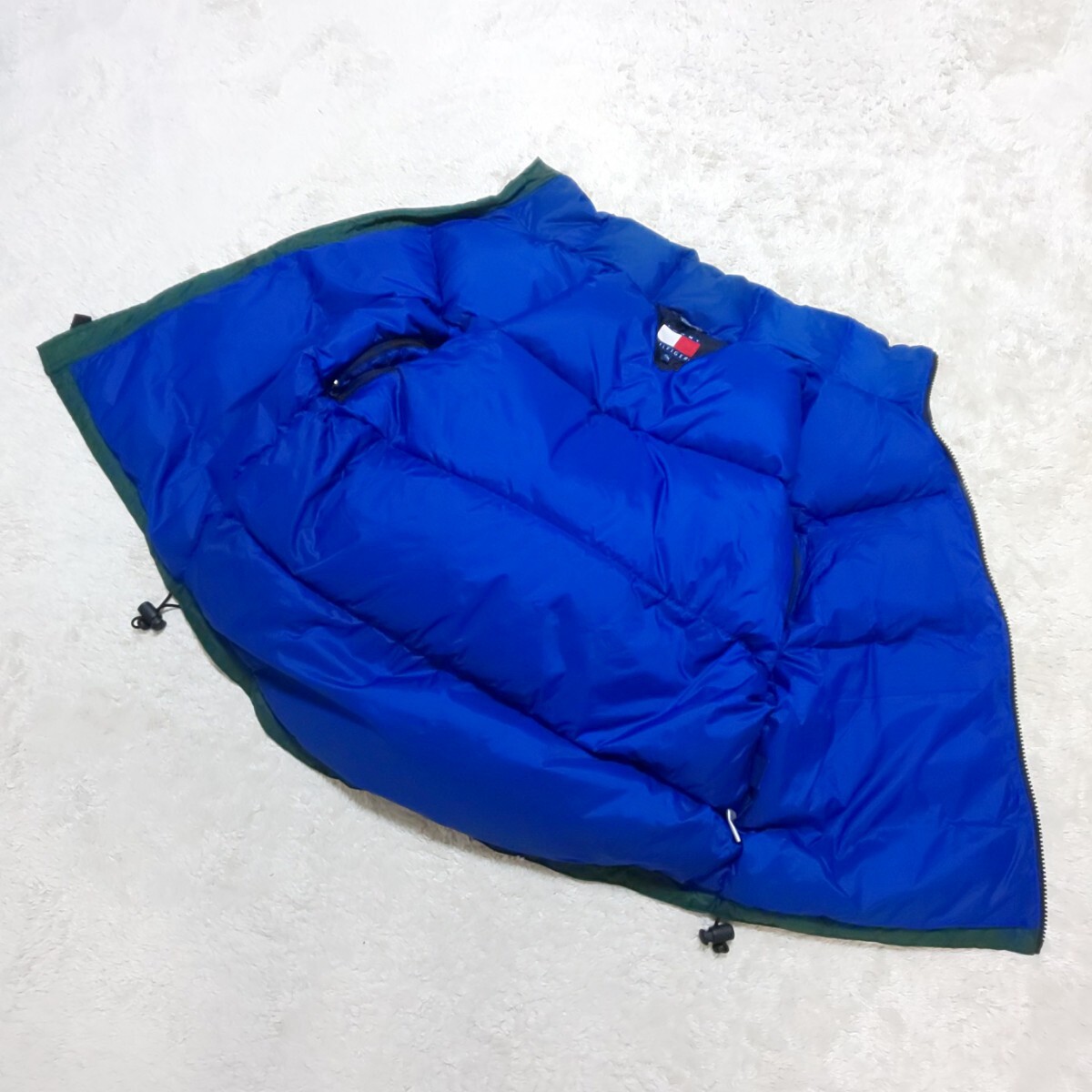 【美品/希少色】90s TOMMY HILFIGER トミーヒルフィガー ヴィンテージ 2wayダウンジャケット ダウンベスト 刺繍パッチ 肉厚 グリーン×ブラック