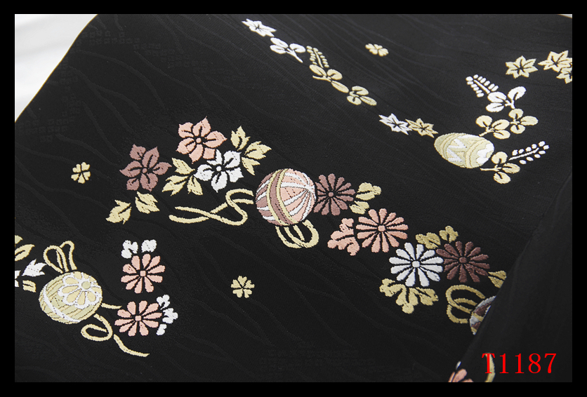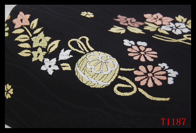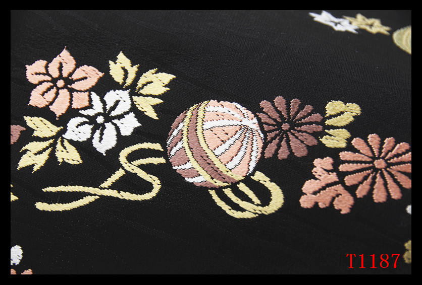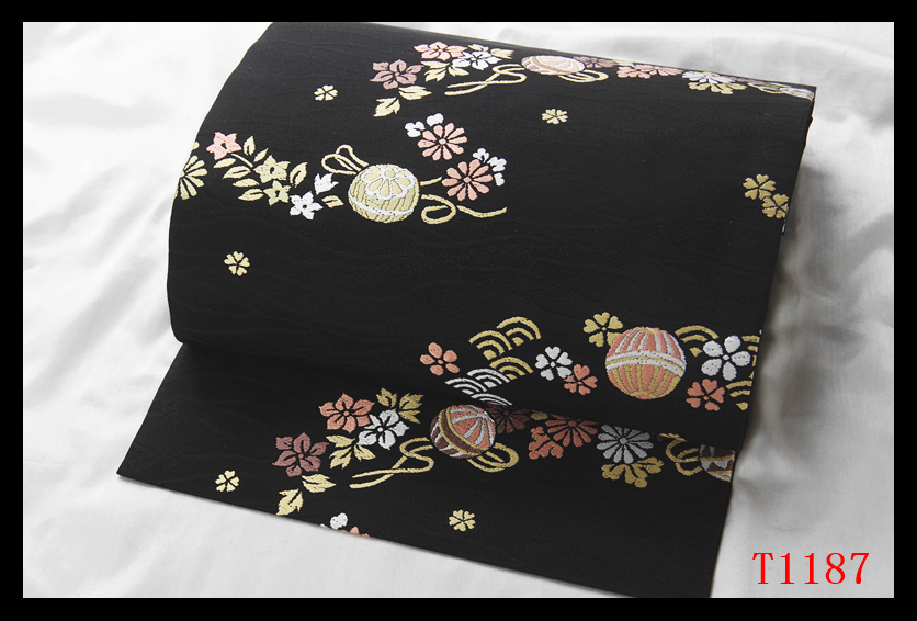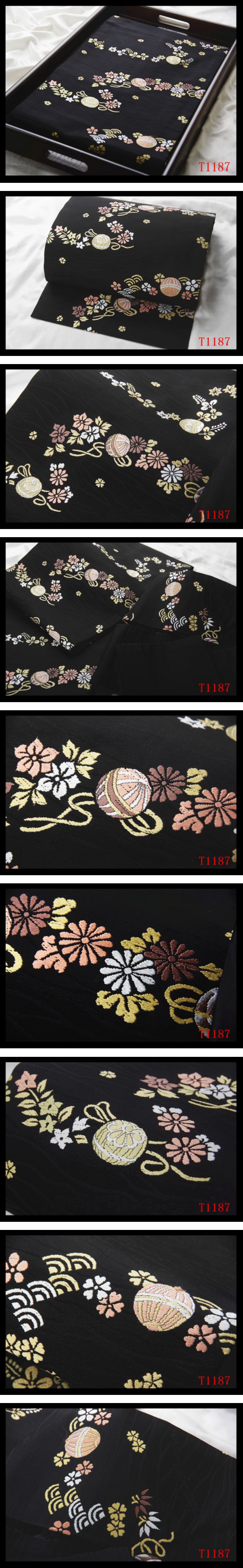 蔵【T1187】厳選逸品 手毬麗花紋 黒色地 気品豊かに 正絹高級美術名古屋帯 ◇検簪着物袋帯和装小物帯締め