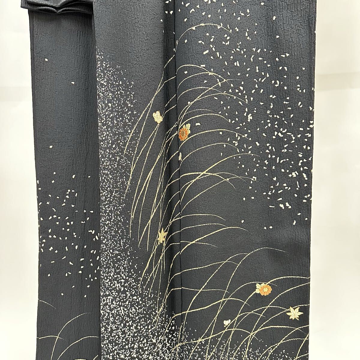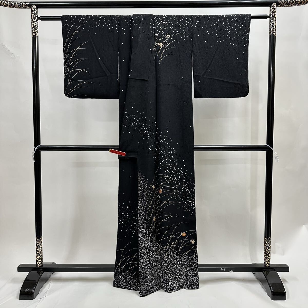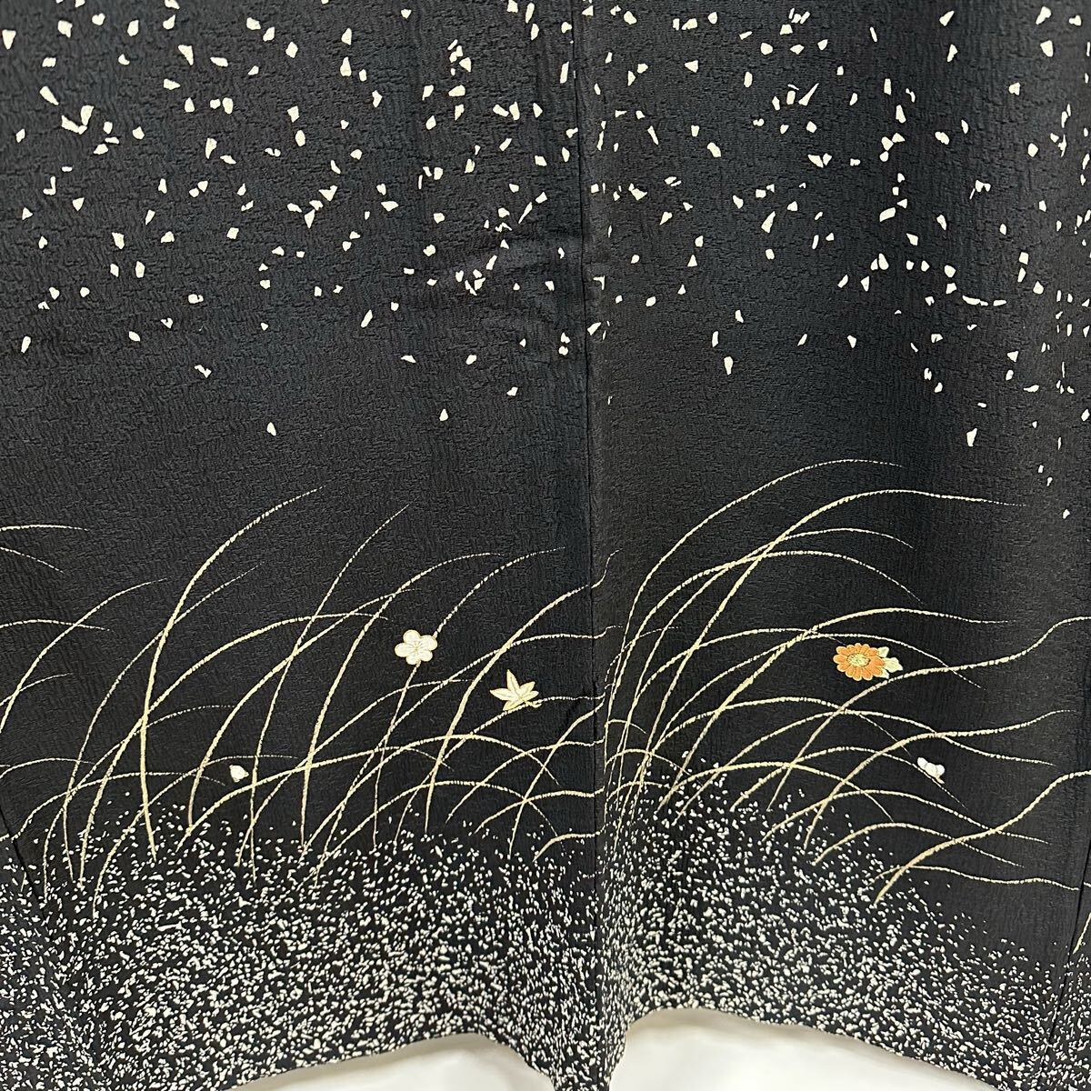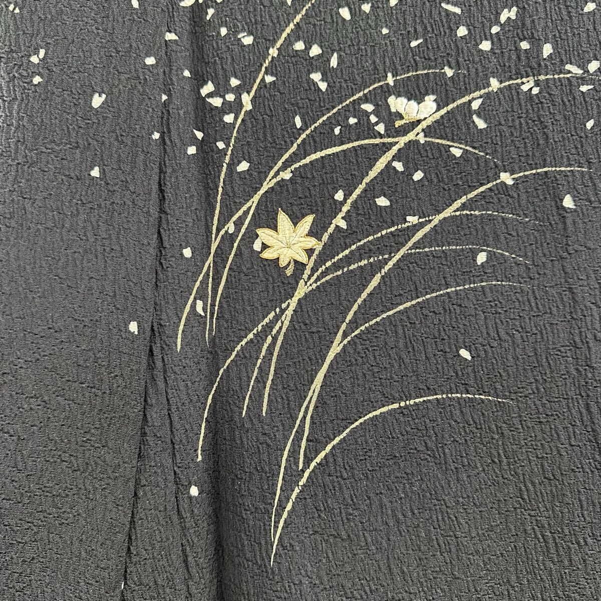 【七福】c829 訪問着 刺繍 金駒刺繍 落款 ちりめん 正絹 袷仕立て 着物 逸品 身丈 約161cm 裄 約64.5cm