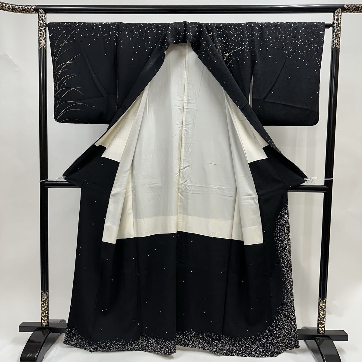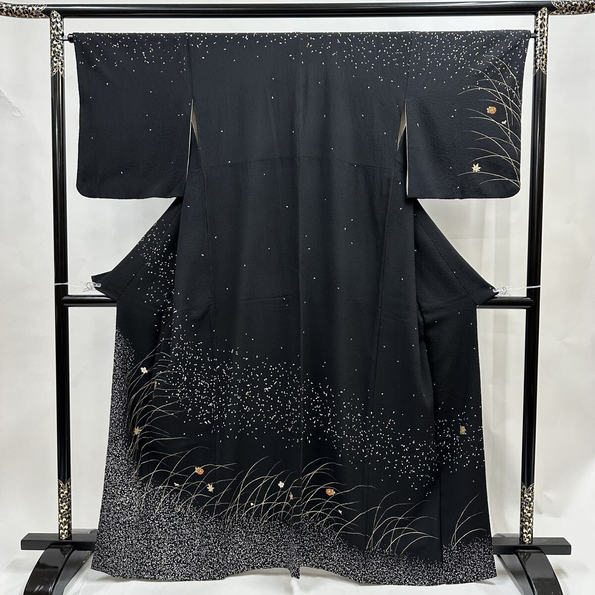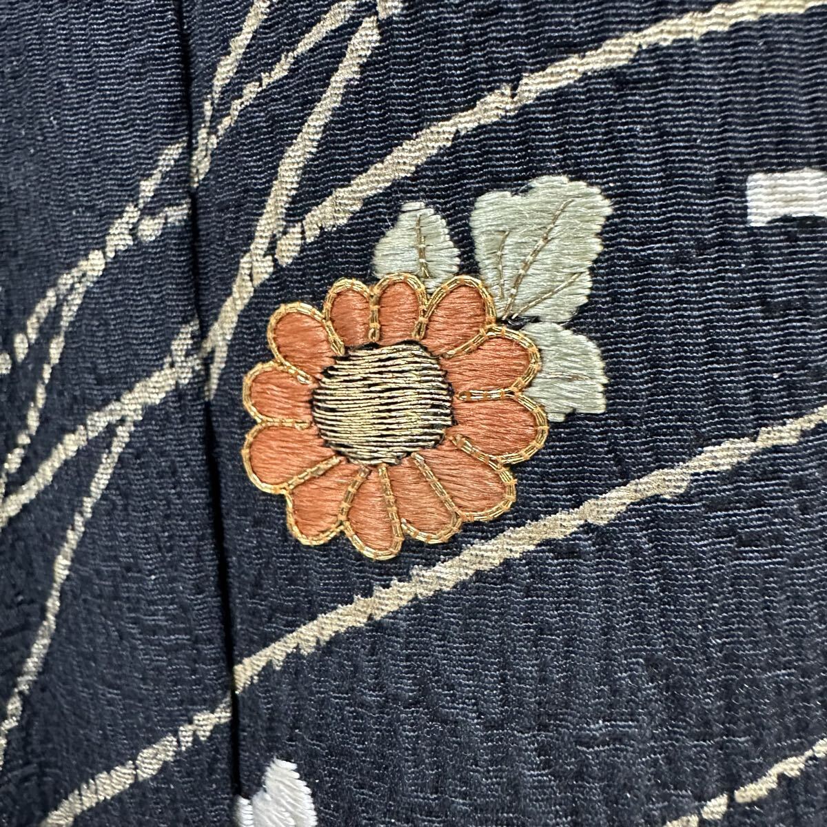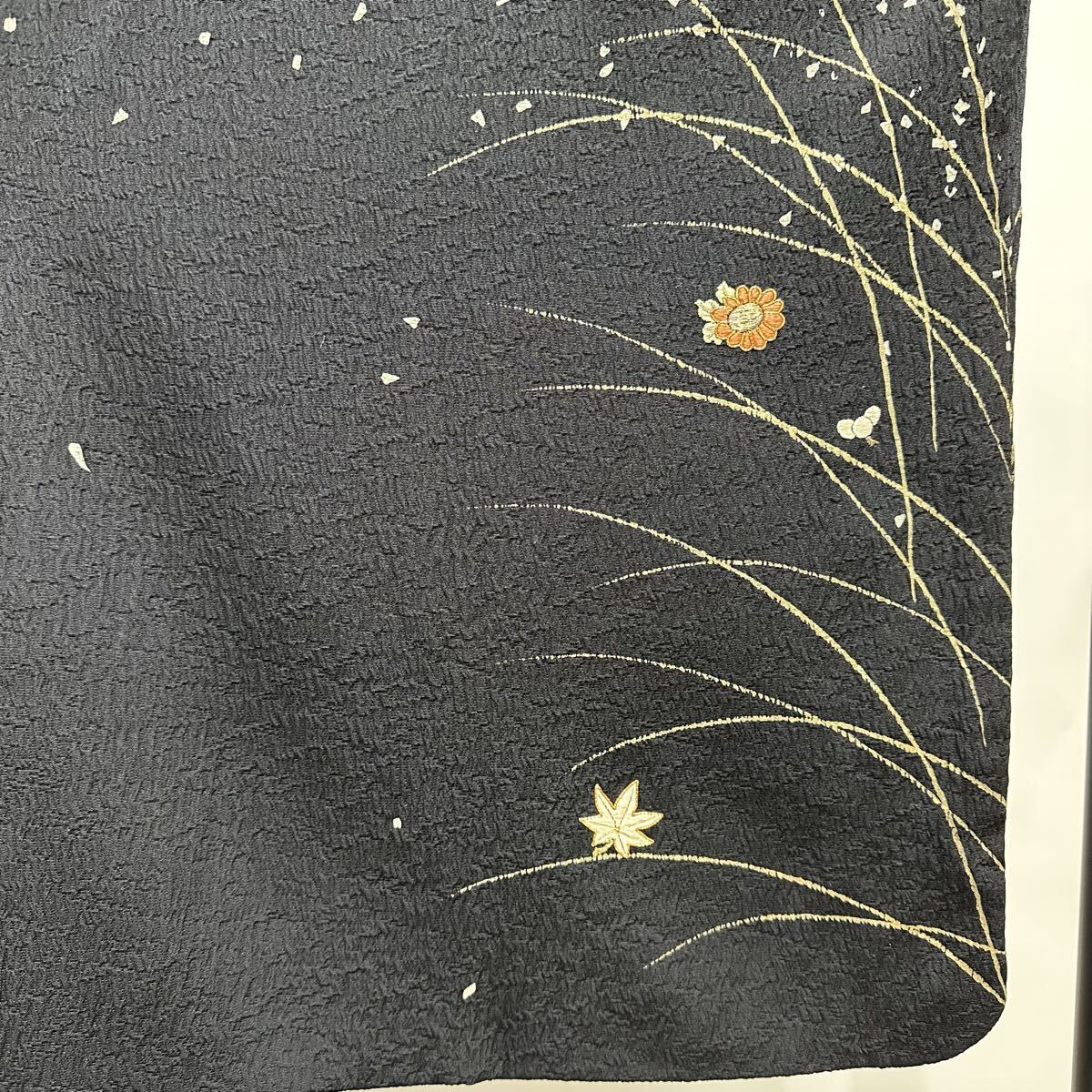 【七福】c829 訪問着 刺繍 金駒刺繍 落款 ちりめん 正絹 袷仕立て 着物 逸品 身丈 約161cm 裄 約64.5cm