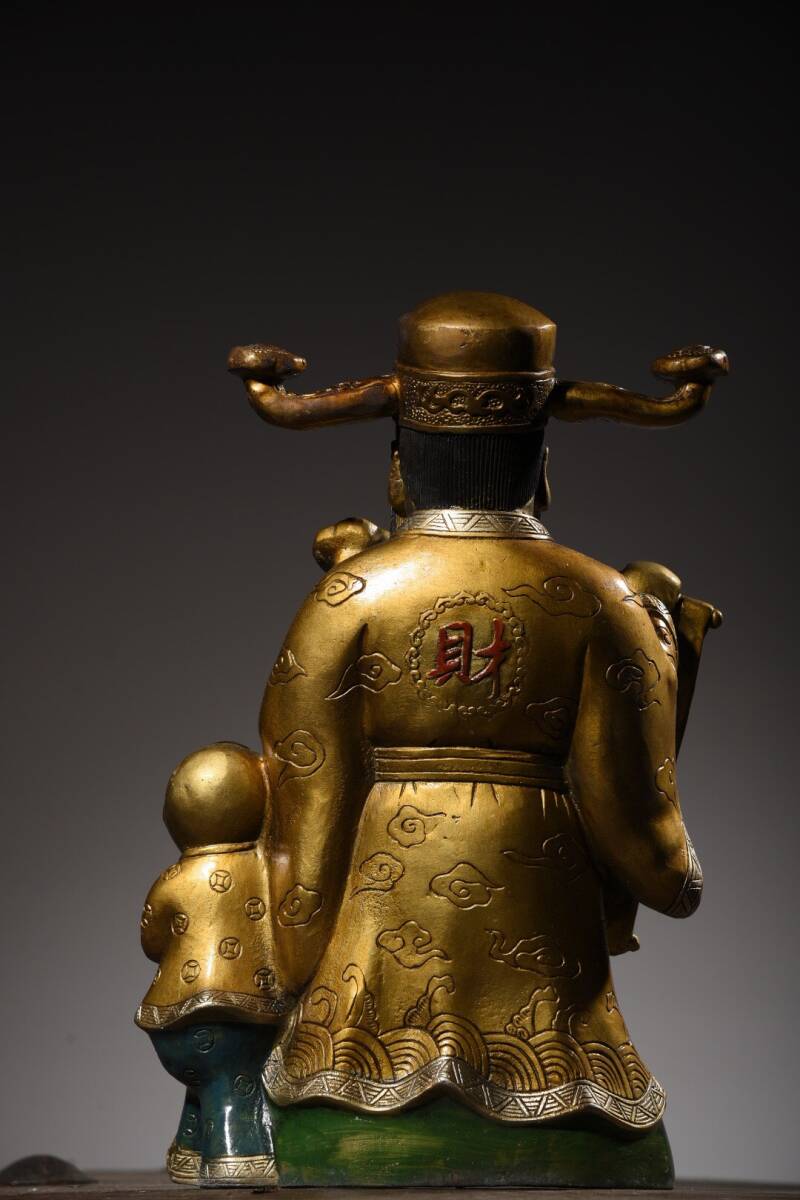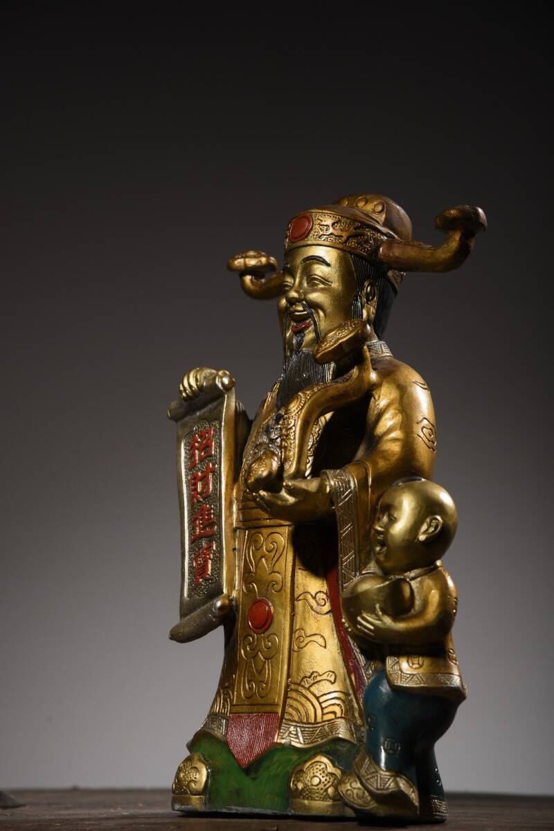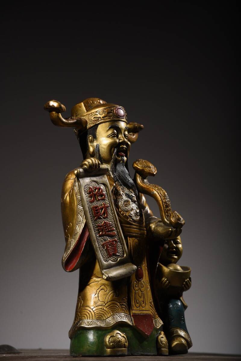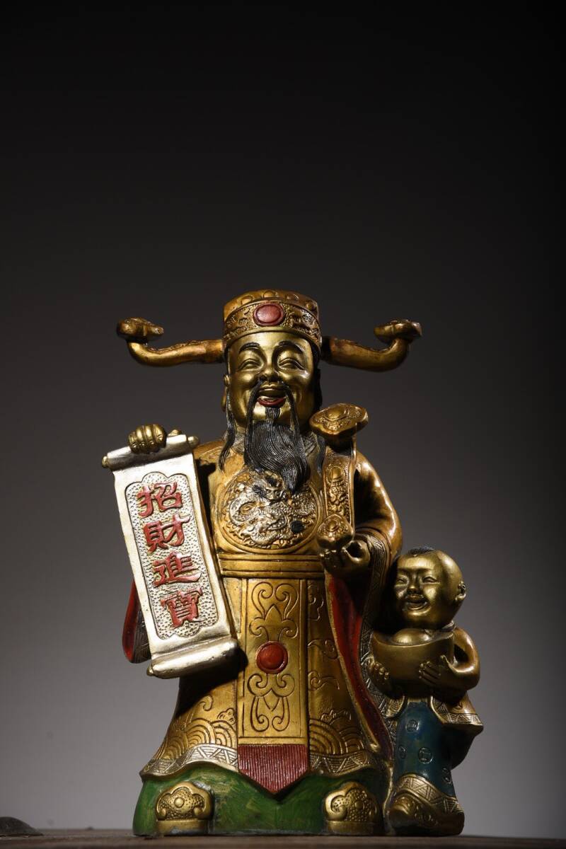 | 【蔵友館蔵品・銅製・金鍍・彩繪・招財進寶像・仏像・宗教・仏教古美術・供養品】・古董品・中国古玩・時代物・希少珍品・中国時代美術 |