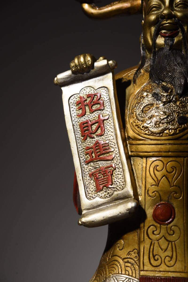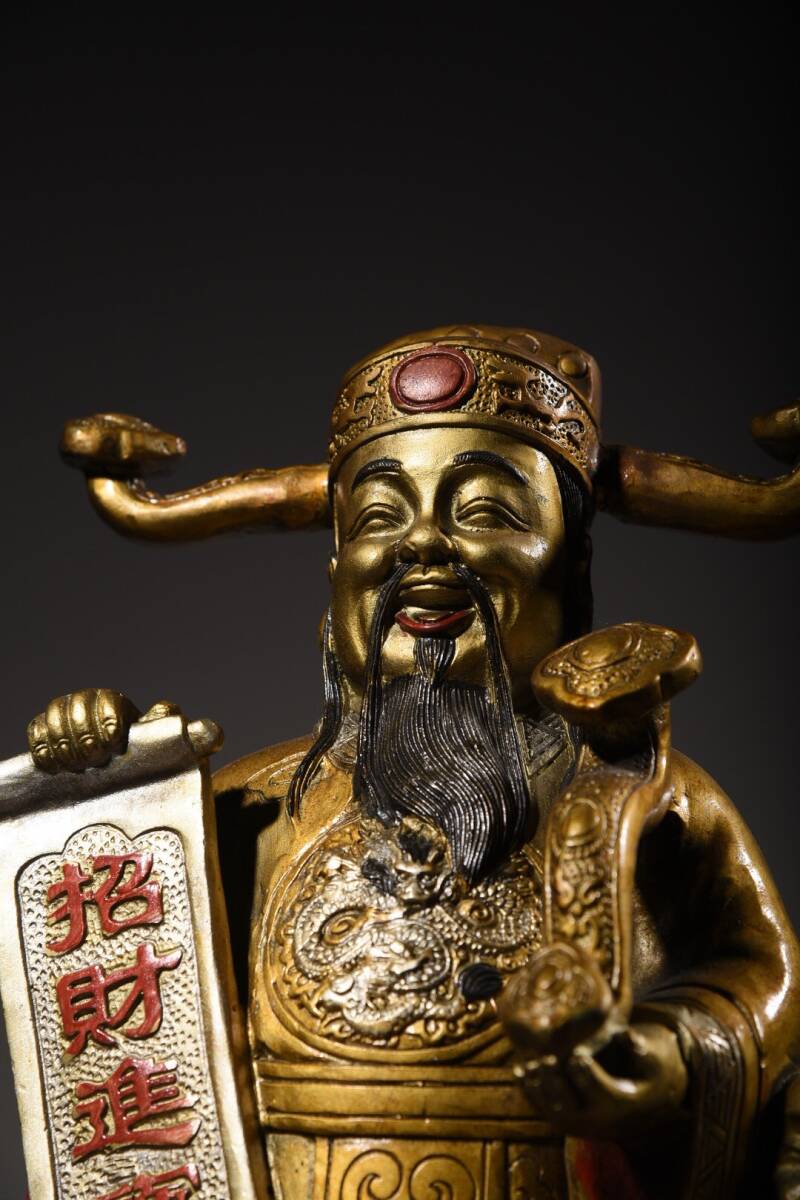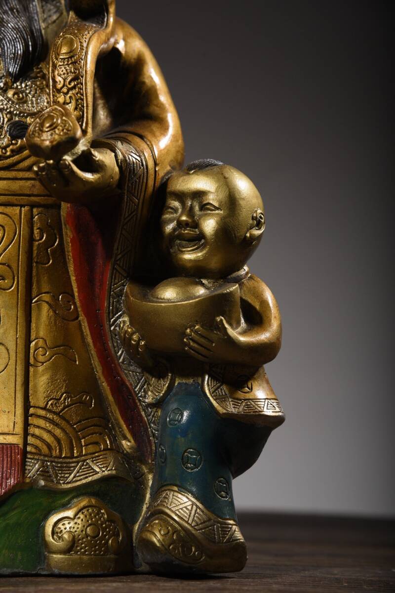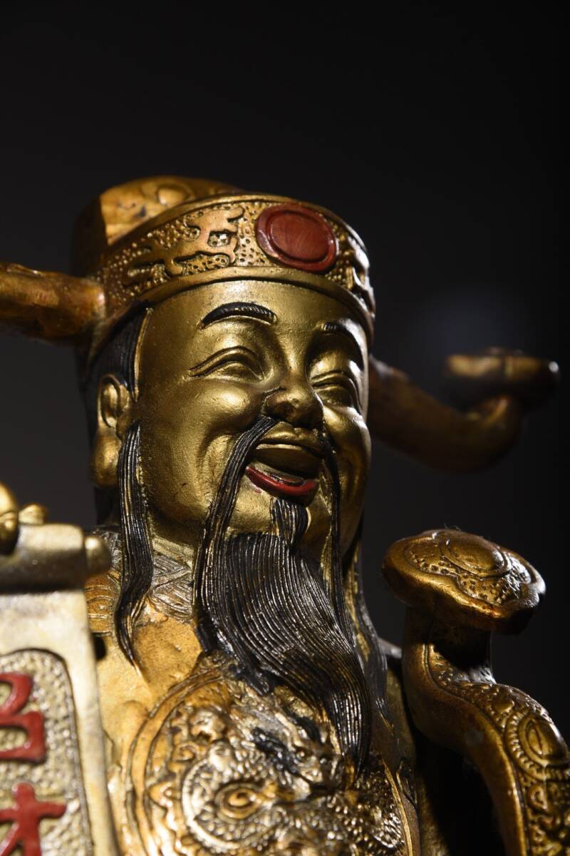 | 【蔵友館蔵品・銅製・金鍍・彩繪・招財進寶像・仏像・宗教・仏教古美術・供養品】・古董品・中国古玩・時代物・希少珍品・中国時代美術 |