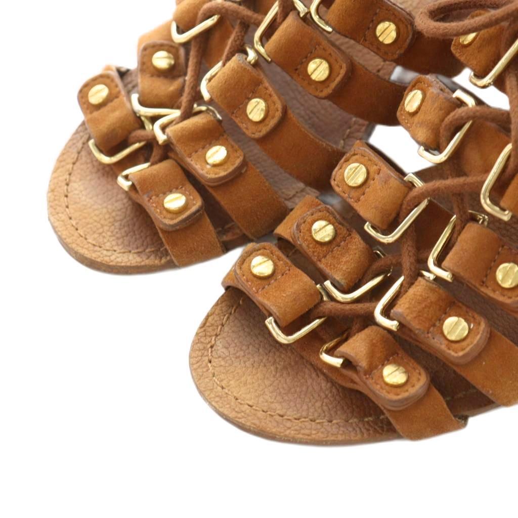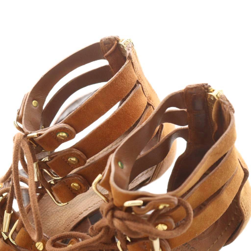 トリーバーチ TORY BURCH グラディエーターサンダル レースアップ ウェッジソール スエード 7 茶 ブラウン 32108677 /AN11 レディース
