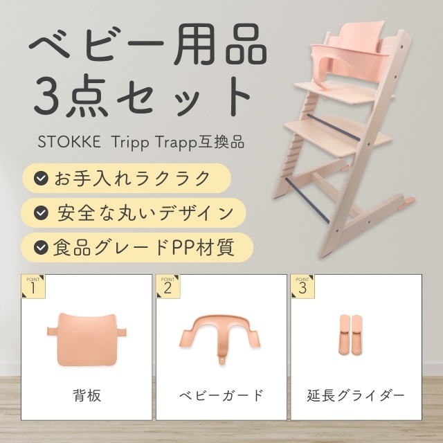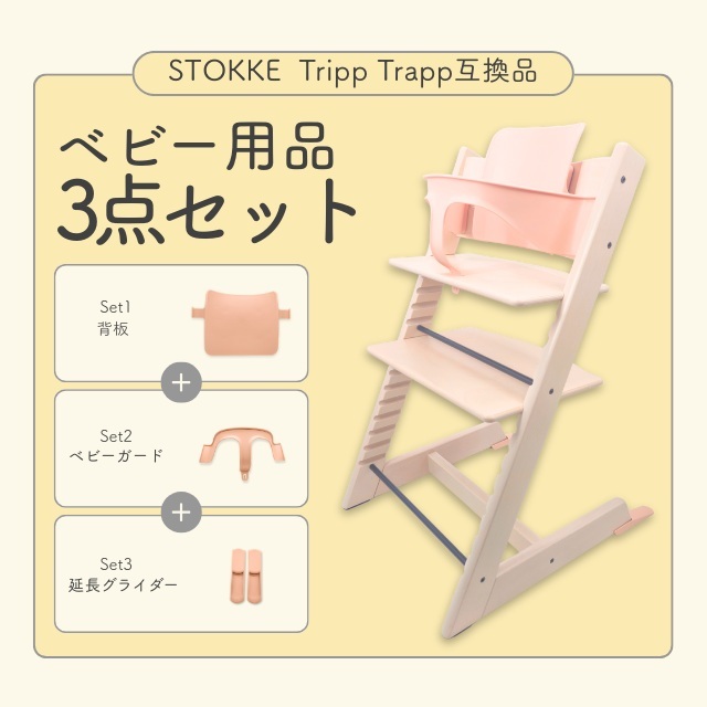A Stokke 互換 ストッケ トリップトラップ 専用 ベビーセット 延長グライダー セット トレイ対応 ベビーチェア ハイチェア (STBS01-PK)