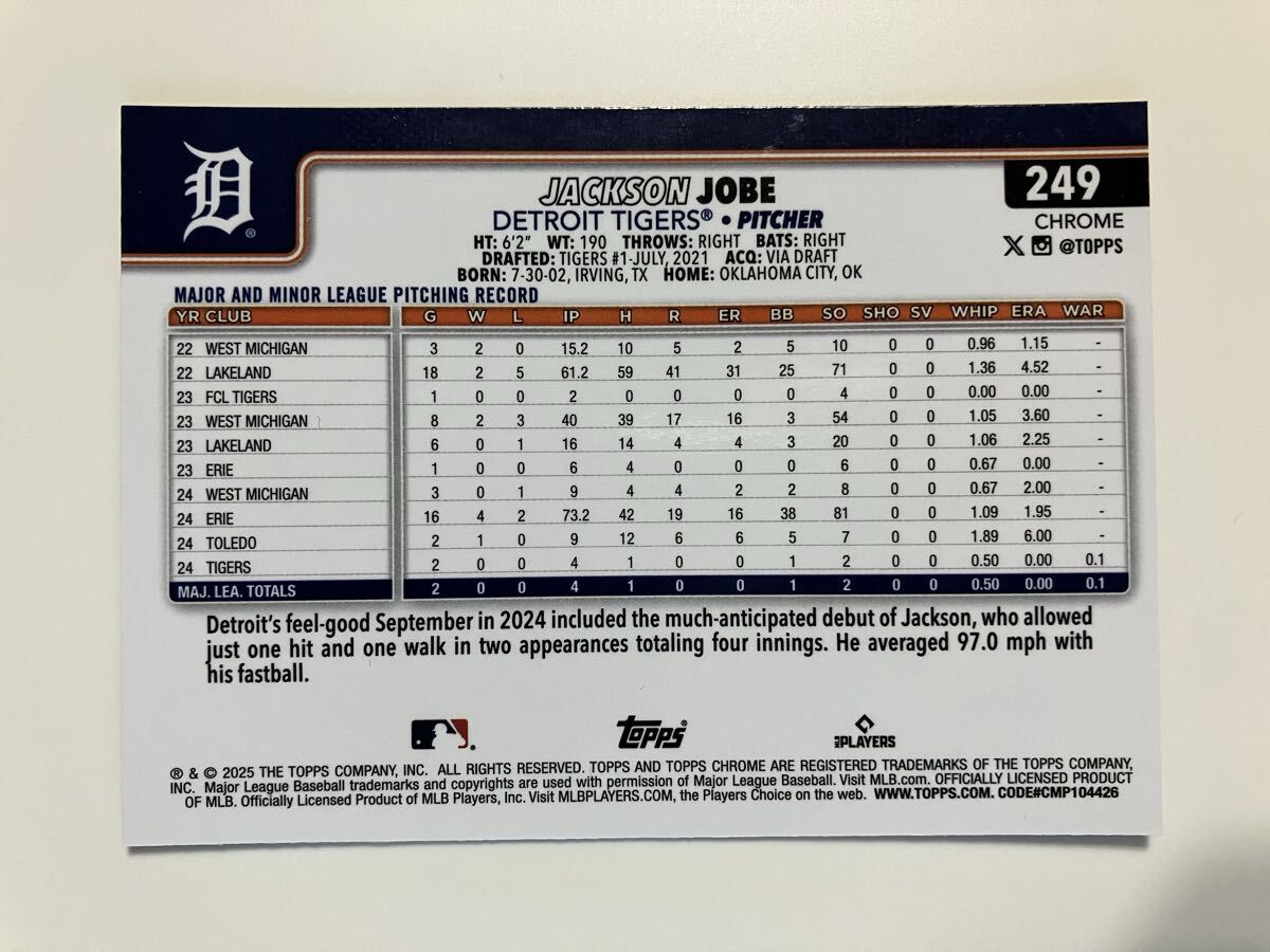 Topps Chrome MLB 2025 No. 249 Jackson Jobe RC ルーキーカード