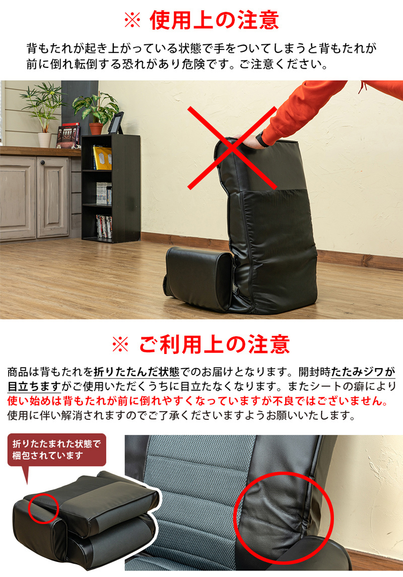 商品説明 | 完成品 リクライニング機能&肘付きでゆったり過ごせるハイバック座椅子。 メッシュ張りで通気性もよく一年を通して快適に過ごせます。 全段階の角度調節が可能なハイバックが特徴の座椅子。 傷や汚れに強いPVCに加え、中央に通気性がよく匂いや熱の篭らないメッシュ素材を使用。 肘付きなので座っていても姿勢が安定しやすくくつろぎをサポートします。 最大まで折りたためばスマートになり片付けも簡単です。 |