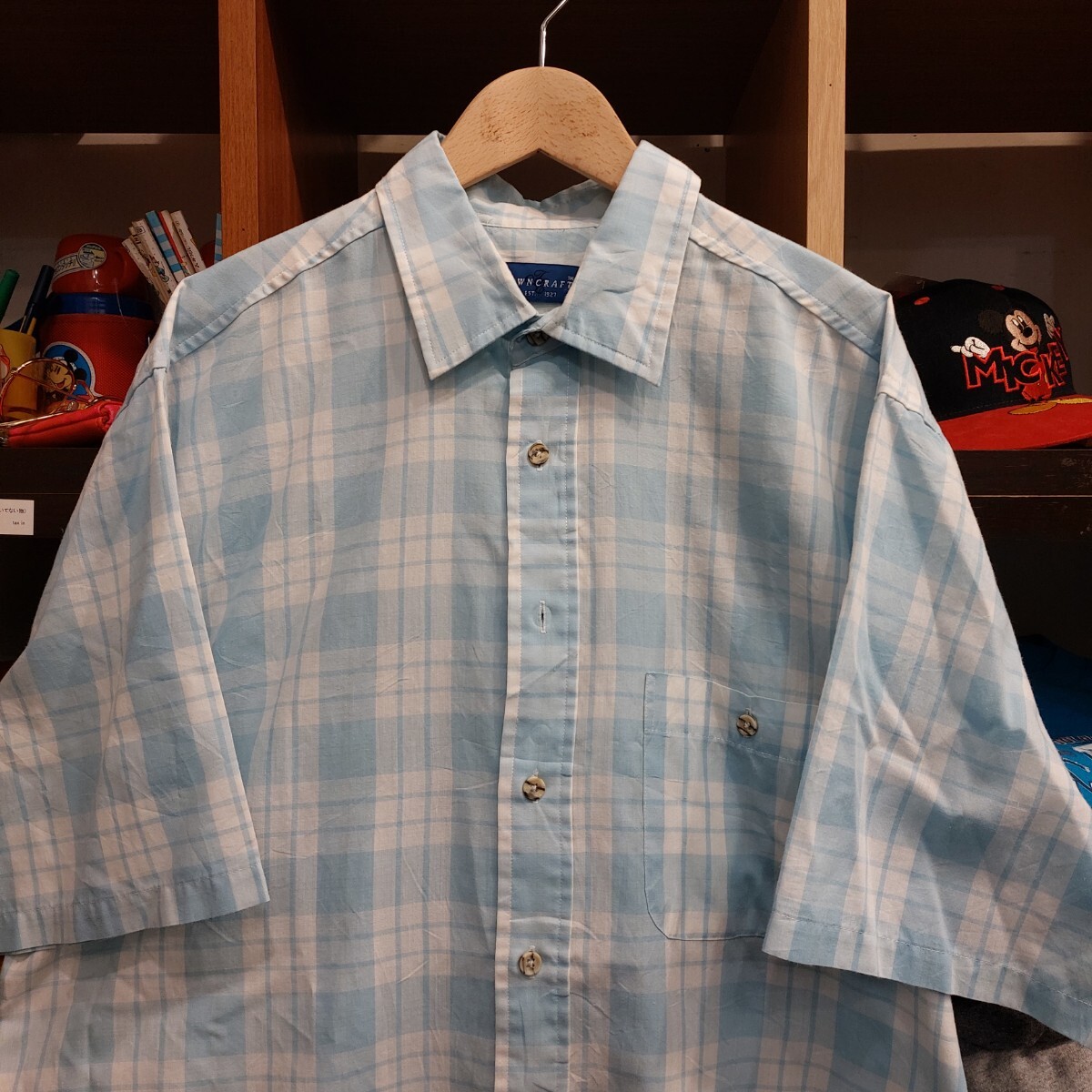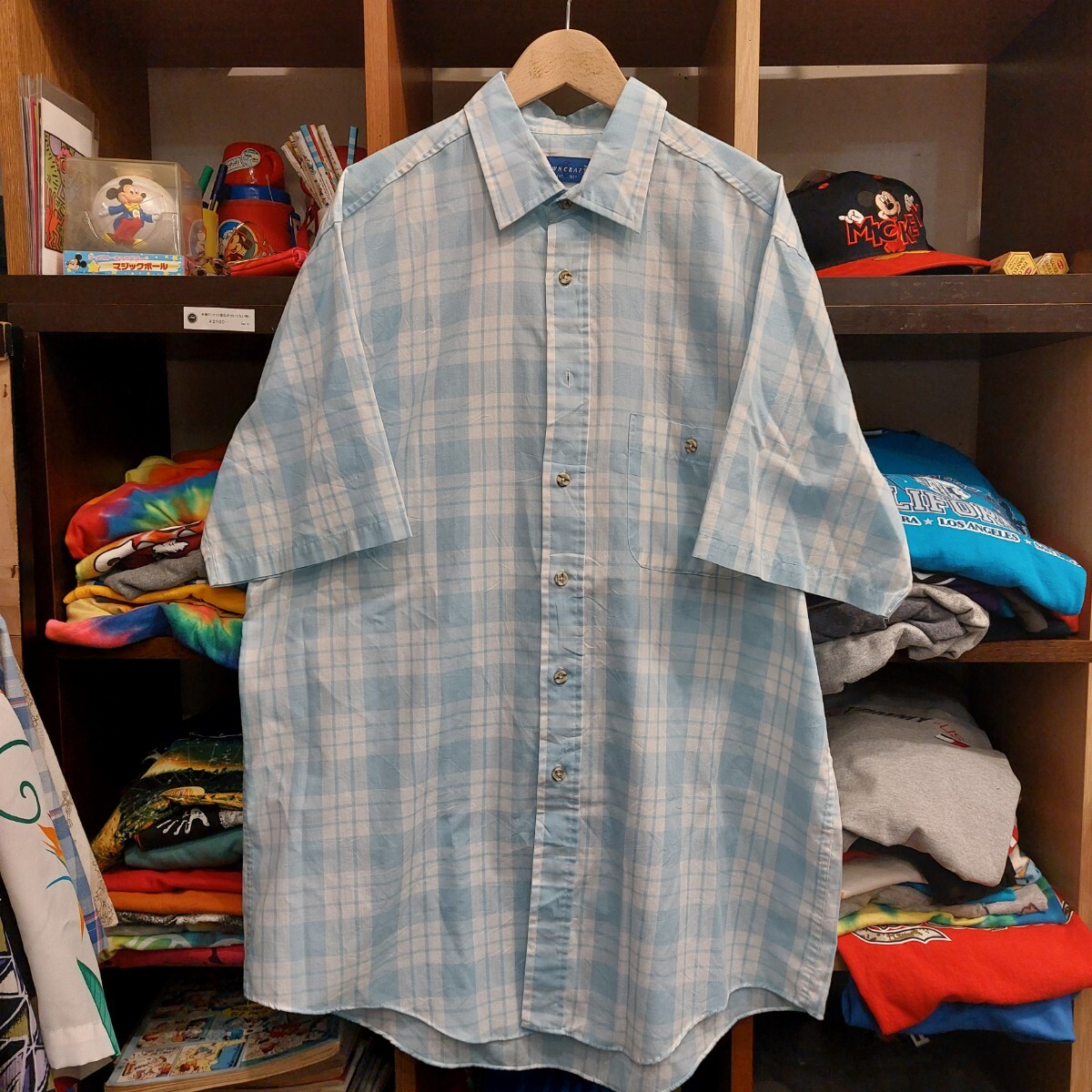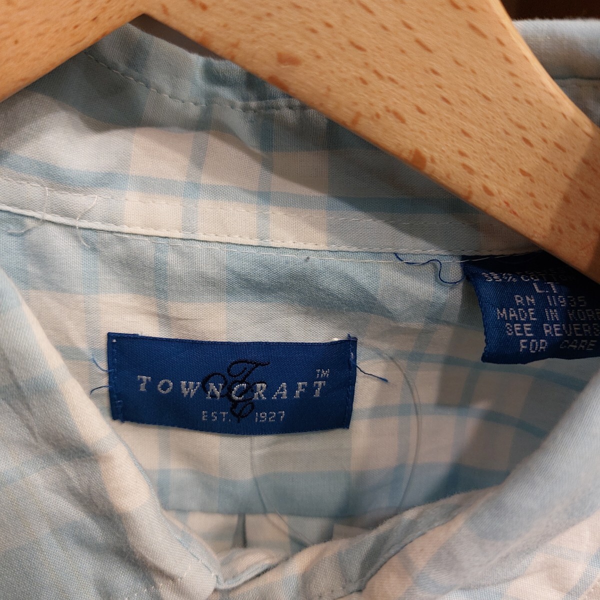 ■商品      : 古着 90年代 タウンクラフト TOWNCRAFT 長袖 チェックシャツ メンズLT 水色 ヴィンテージ 07H0702
