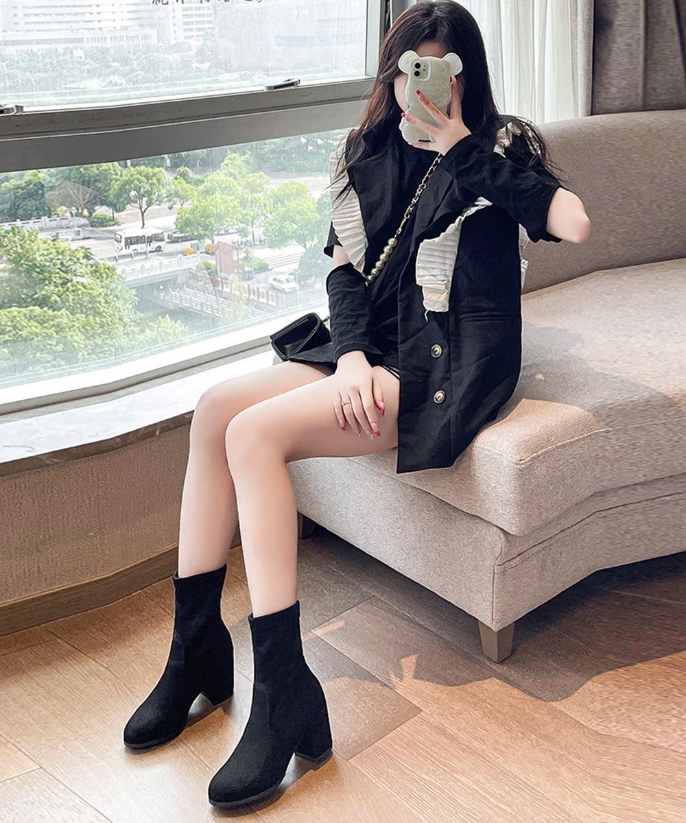 秋冬ブーツブラック オフィスカジュアル 疲れにくいくつ韓国