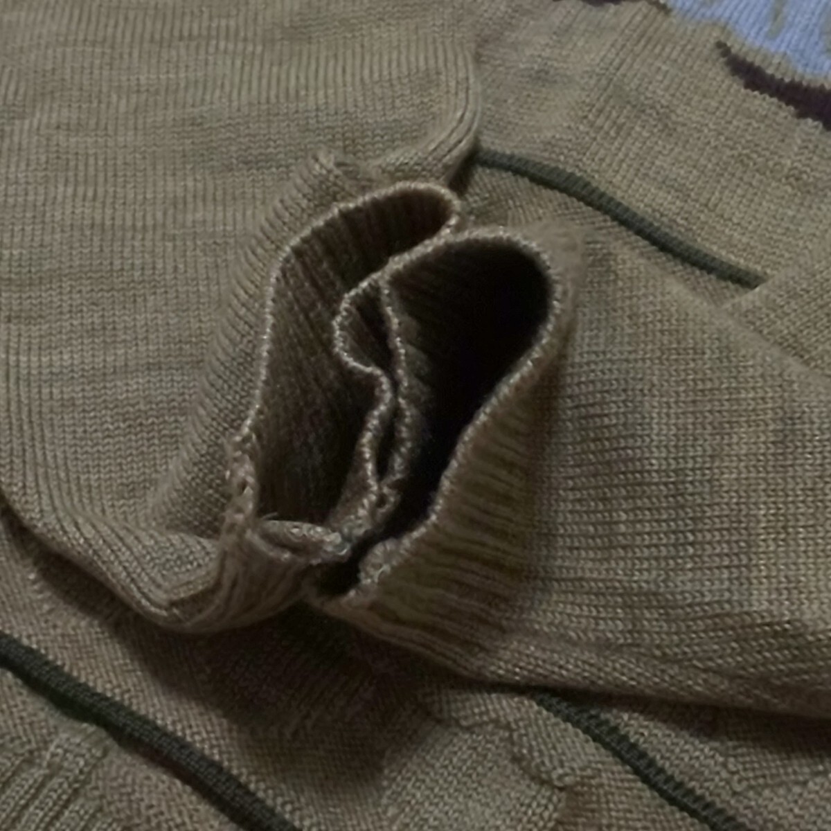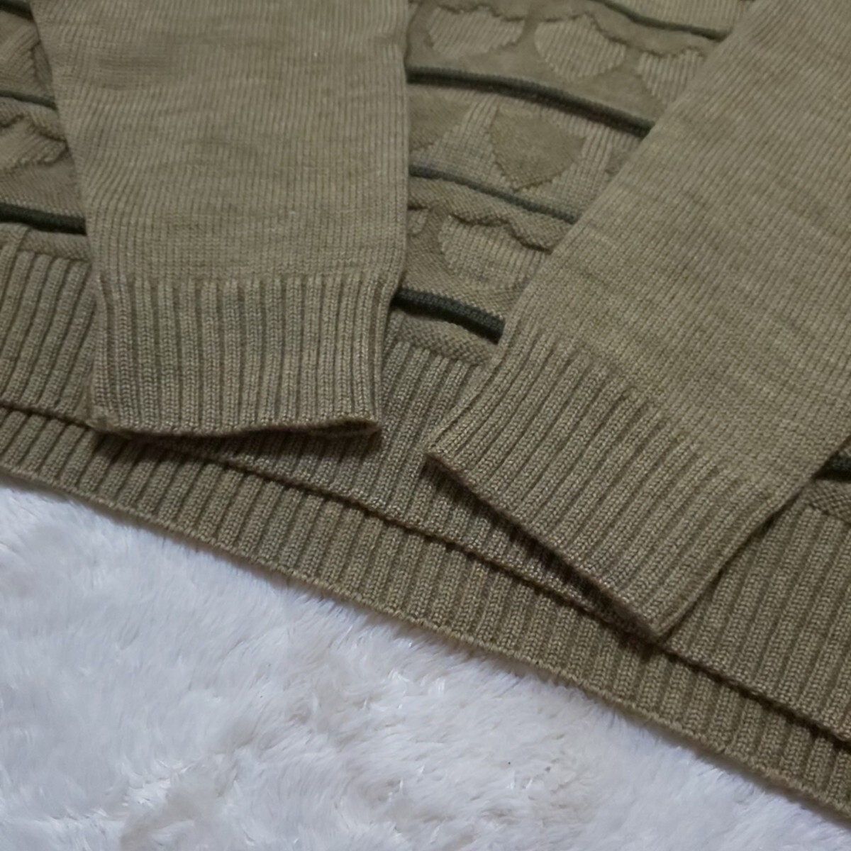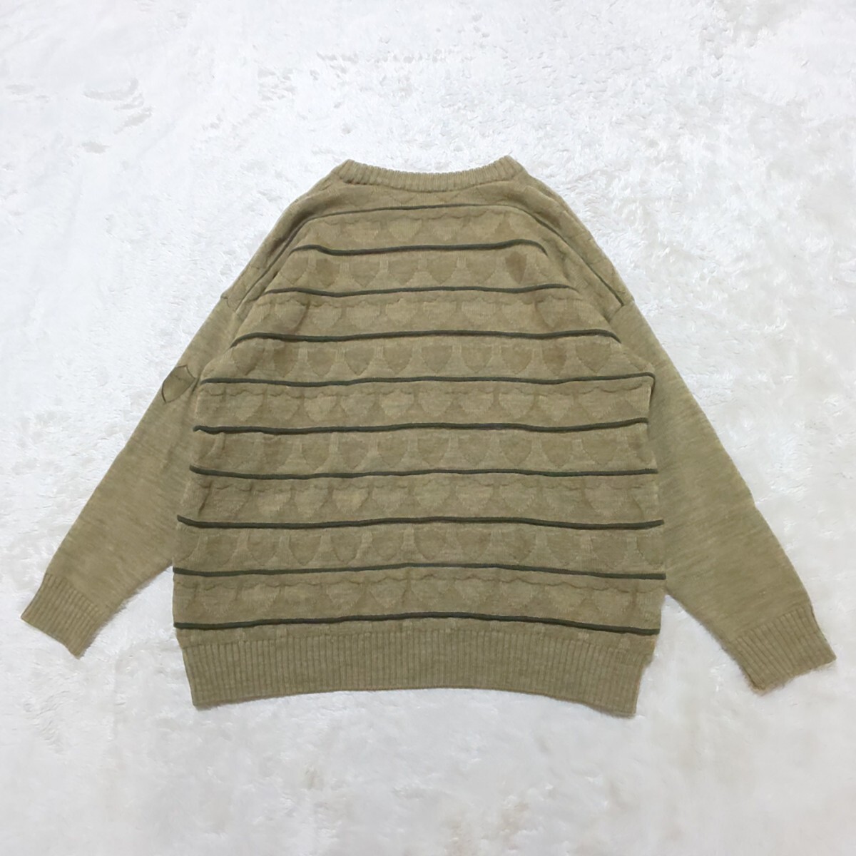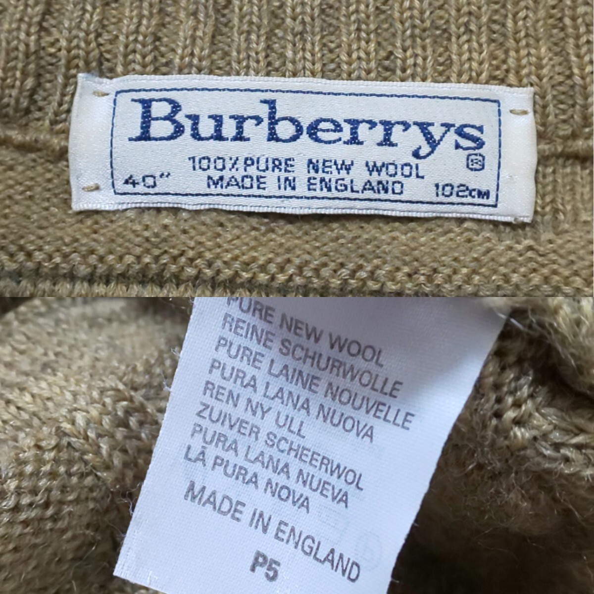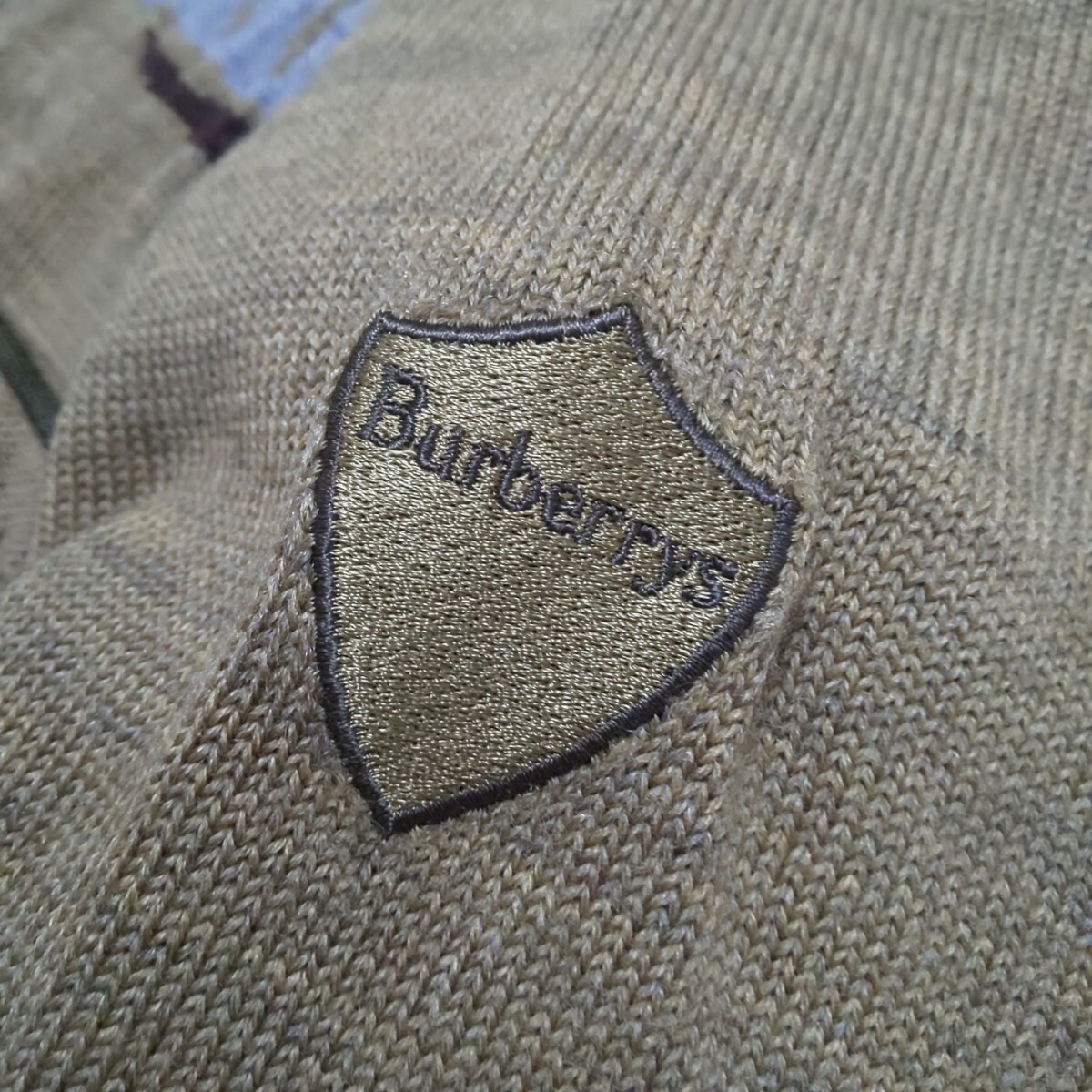 【極希少/美品】英国製 Burberrys バーバリー ヴィンテージ 3Dホースニット セーター エンブレムパッチ 膨れ編み カーキ