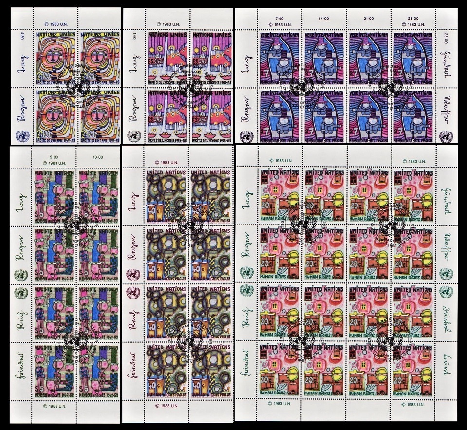 1983年に国連から発行された、世界人権宣言35周年切手・6枚完のフルシート。