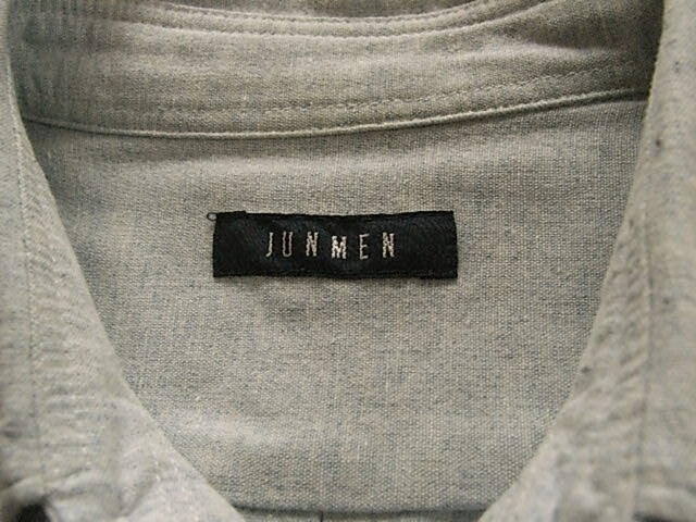 JUN MEN ジュンメンの長袖ドレスシャツです。サイズはMになります。平置き実測サイズは、肩幅約43cm、袖丈約60cm、着丈約68cm、身幅約53cmです。素人採寸のため多少の誤差はご了承ください。全体色はデニム風淡いネイビー系のデザインになります。素材感もとても良く、ジュンメンらしいとてもかっこいい素敵なデザインです。特に目立つダメージはありませんが、あくまでも中古でありますことを御了承願います。ノークレーム・ノーリターンでお願いします。送料込み(クロネコ便等発送)になります。