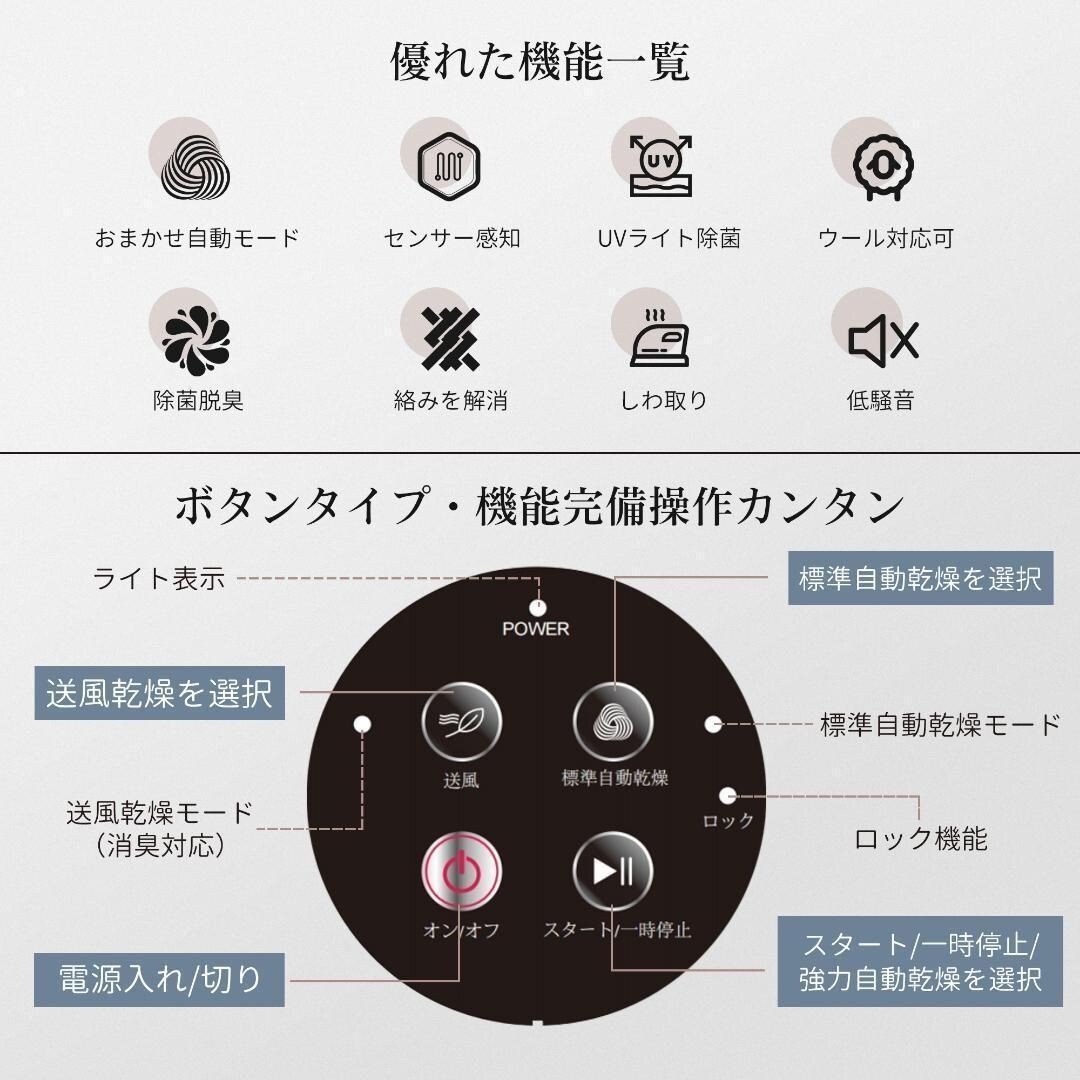 【安全ロック】小さなお子さまのいるご家庭に安心感を提供する安全ロック機能が装備されています。乾燥プロセス中に誤って操作されることを防ぎます。