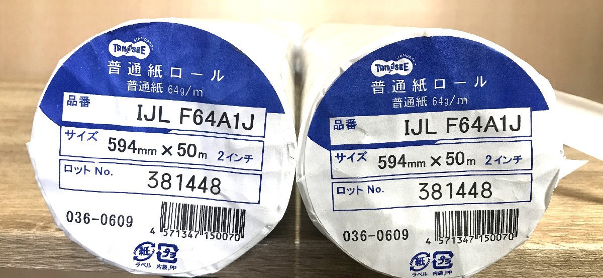 【未開封】TANOSEE 普通紙ロール IJL F64A1J A1ロール 594mmX50m 2本 モノクロ&カラー線画 白色
