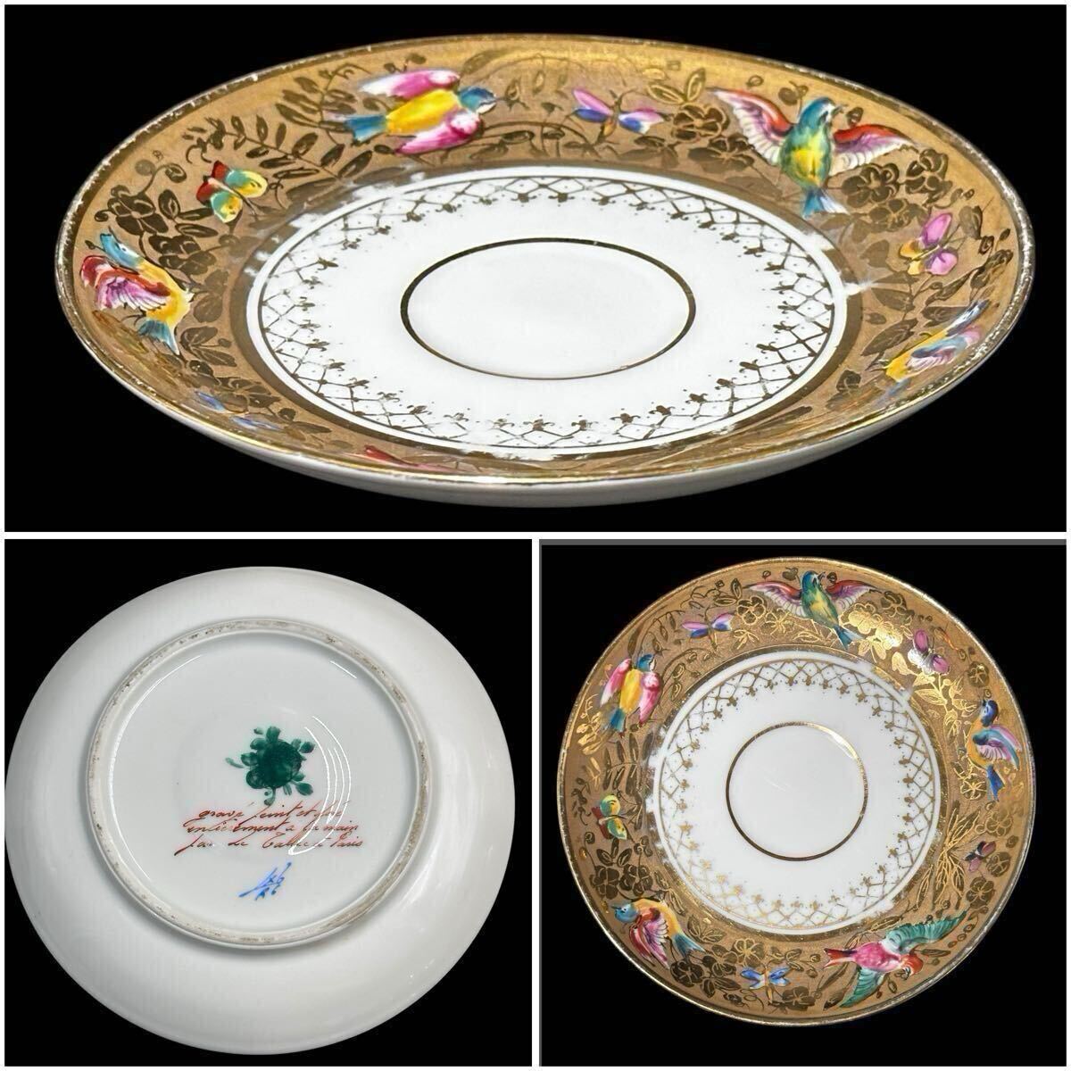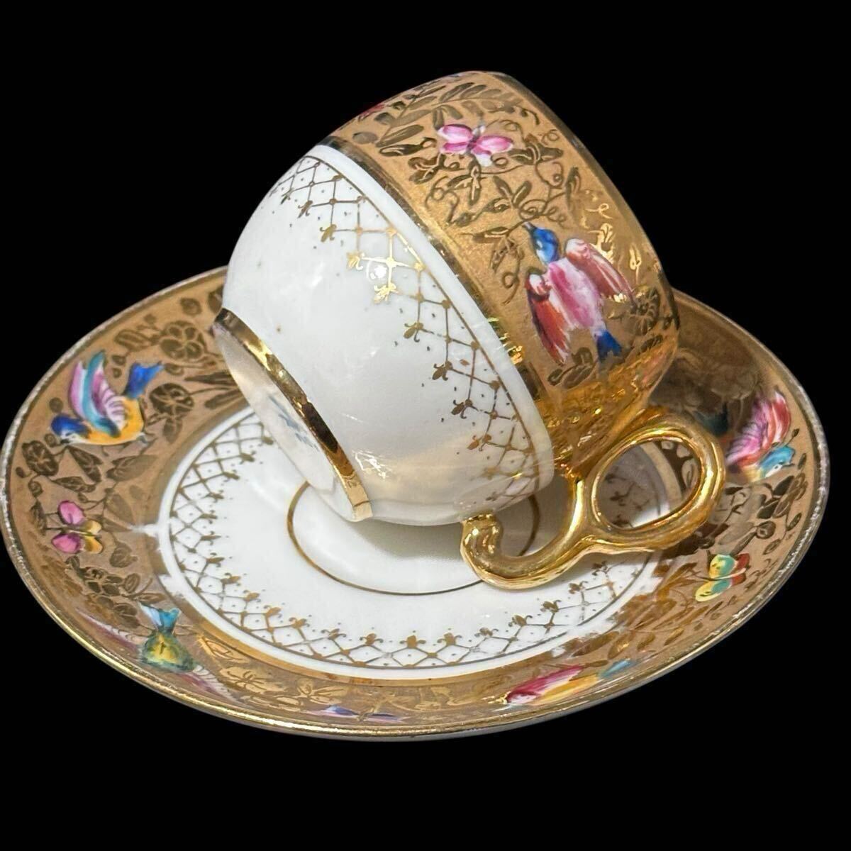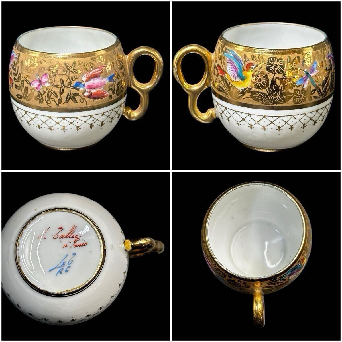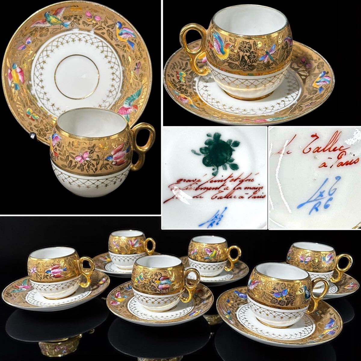 【商品の説明】リモージュ焼 カップ&ソーサー 6客セット 裏銘 直筆サイン フランス製 金彩花鳥図