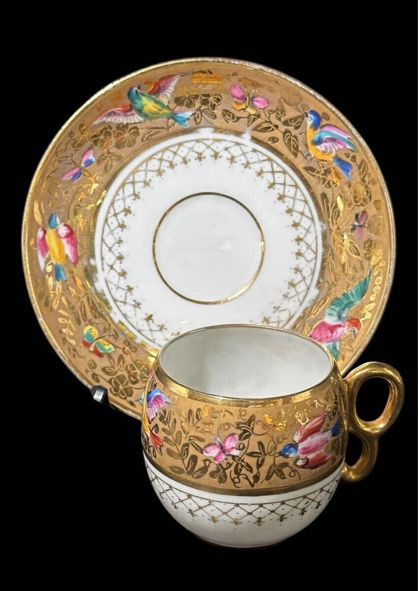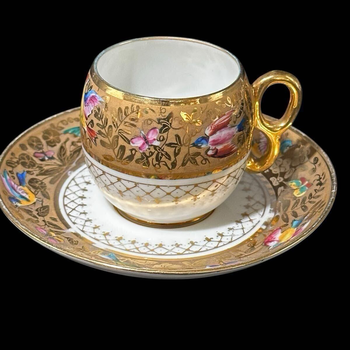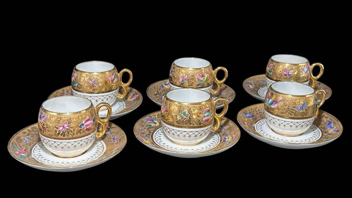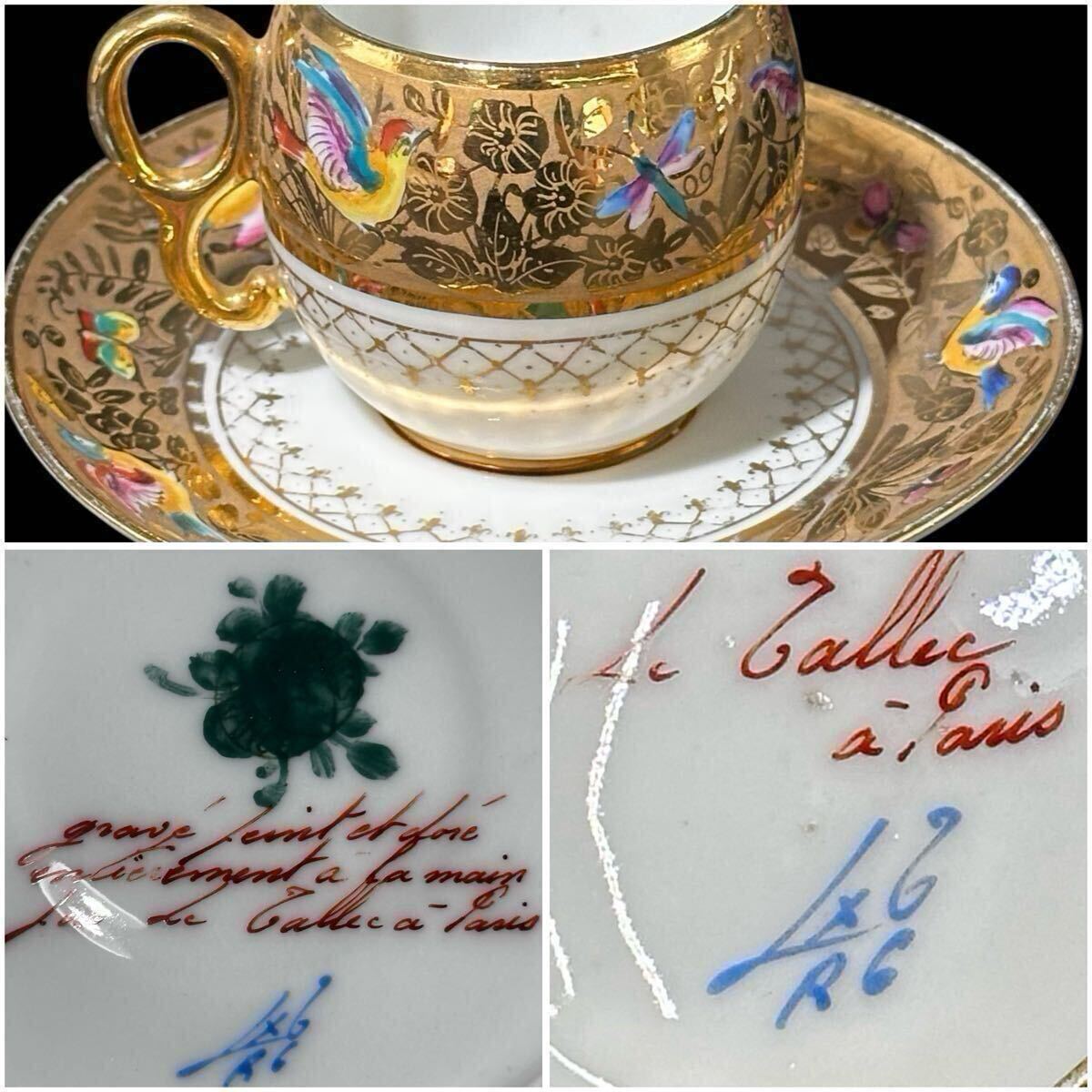 【商品の説明】リモージュ焼 カップ&ソーサー 6客セット 裏銘 直筆サイン フランス製 金彩花鳥図