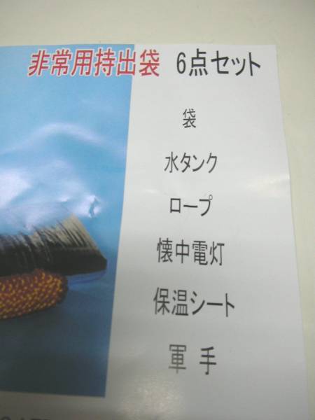 | ★★非常用持ち出し袋6点セット★★ ★アウトレット価格にて大放出!! ★明日は我が身!!いざというときの災害時の為に準備しておきたい非常用持ち出し袋6点セット(水用ポリタンク、懐中電灯、ロープ、アルミシート、軍手、袋) ご4人家族には2,3個をご用意されることをお勧め致します。海や山のアウトドアの携帯品として、また車中内に常備していざという時に便利です!! ■ ★期間限定商品に付き数量に限りが御座います。お早めにお求めください。 ★★★商品代消費税は無料です!!★★★ 尚、店頭販売にて完売になった場合は早期終了致します。ご了承下さい。 新品未使用!数量限定で格安で販売致します。お早めにお求めください!! 新品未使用です。 同梱発送に対応致しますので、送料は複数落札がお得です!! 店頭販売も致しております、完売の際はご了承下さい お急ぎの場合、事前にご連絡いただけますようよろしくお願い致します。 数量限定となります。なくなり次第終了させていただく場合もございますので 御了承いただけますようおねがいいたします。 お急ぎの方は在庫状況等はメールにてご確認をお問い合わせ下さい。 ★★★商品代消費税は無料です!!★★★ 新品未使用!数量限定で格安で販売致します。お早めにお求めください!! (製造過程、輸送時、保管時等に付くと思われる小傷等は予めご理解、ご了承ください。) 同梱発送に対応致しますので、送料は複数落札がお得です!! 店頭販売も致しております。完売の際はお取り寄せ、又は、オークションを早期終了させて頂きます。 お急ぎの場合は事前にご連絡下さい。 その他、気になる点がございましたら事前に御質問下さい。宜しくお願い申し上げます。 落札後のキャンセルは基本的にお受けできませんのでご了承下さい。 |
