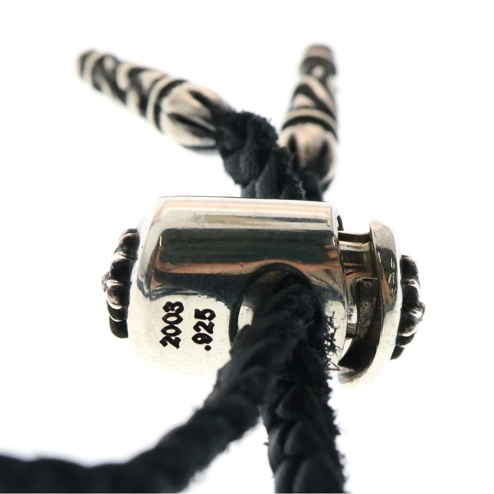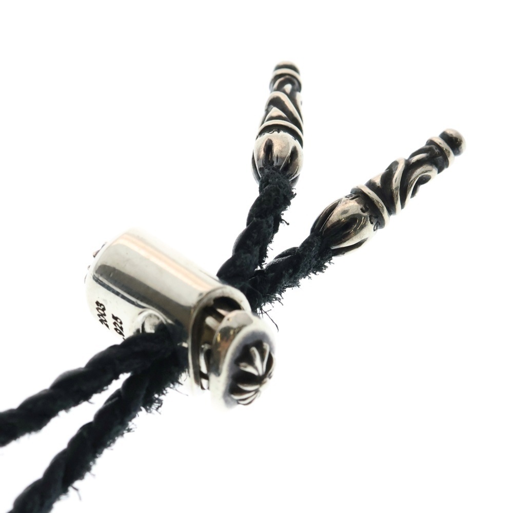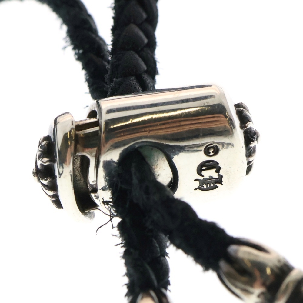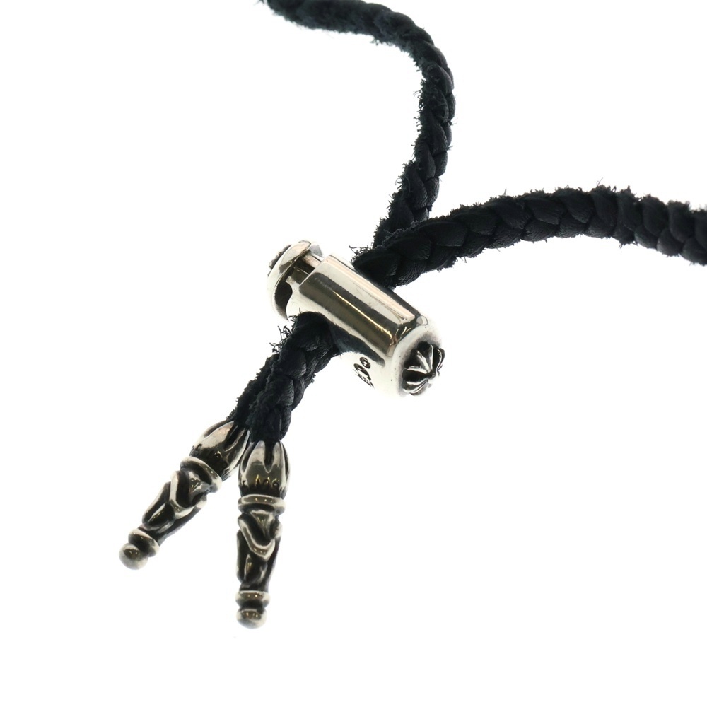 CHROME HEARTS クロムハーツ LEATHER BRAID LACESTPPRV1 レースストッパー スクロールチップ レザーブレードネックレス ブラック/シルバー