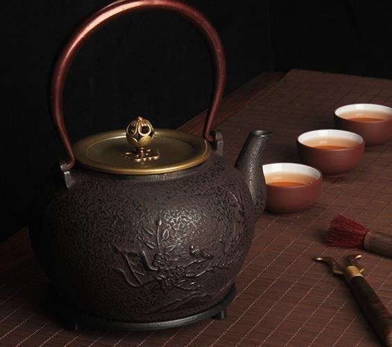 高級感満載!喜びに目を輝かす 鉄やかん 鉄びん 鉄分補給 鉄器 急須 ティーポット 茶壺 提梁壷 水壷 茶道具★1.4L