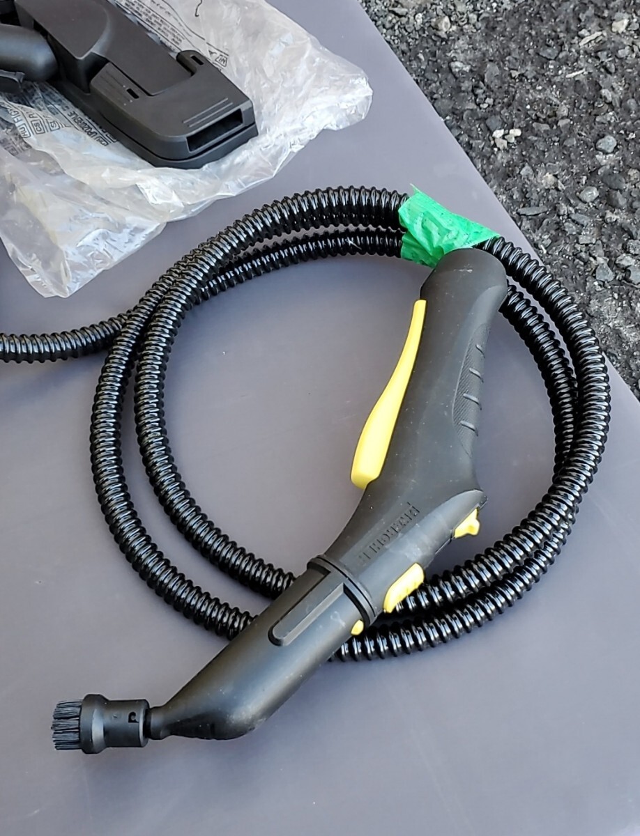 ケルヒャー スチームクリーナーです。動作確認済み。2013年に購入後、あまり使用する事なく保管していました。経年による多少のコキズ等を伴いますが、全体的は良好な状態となっています。