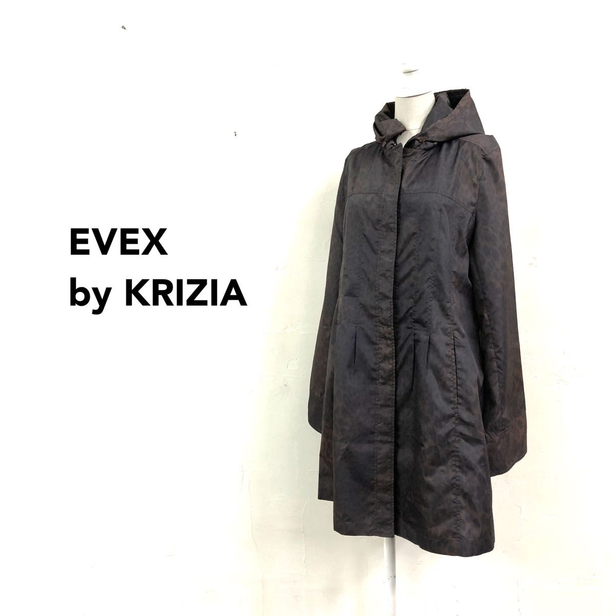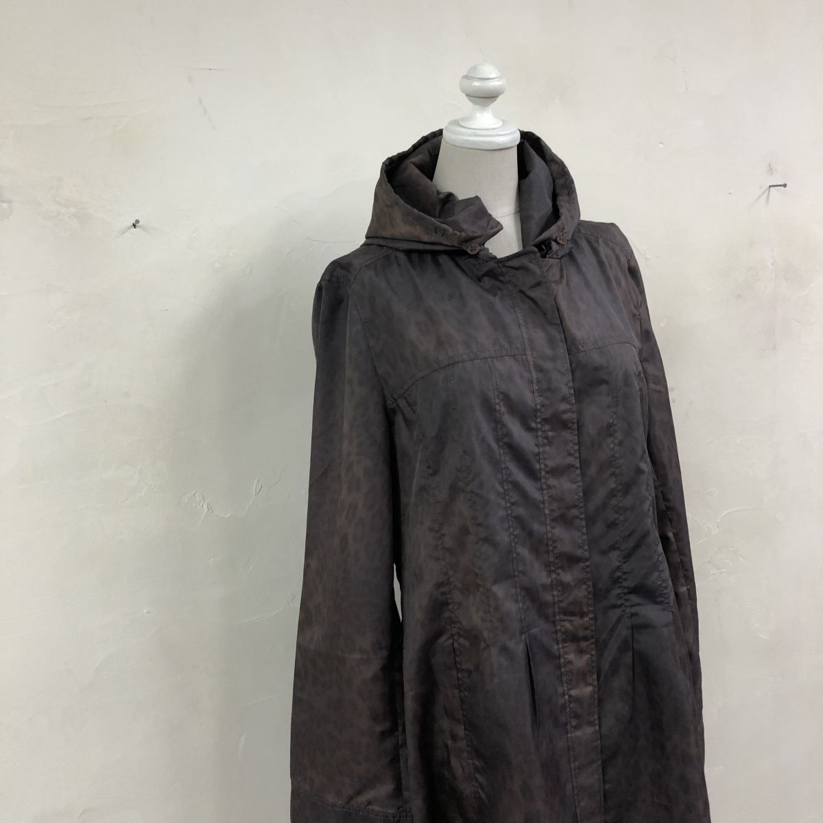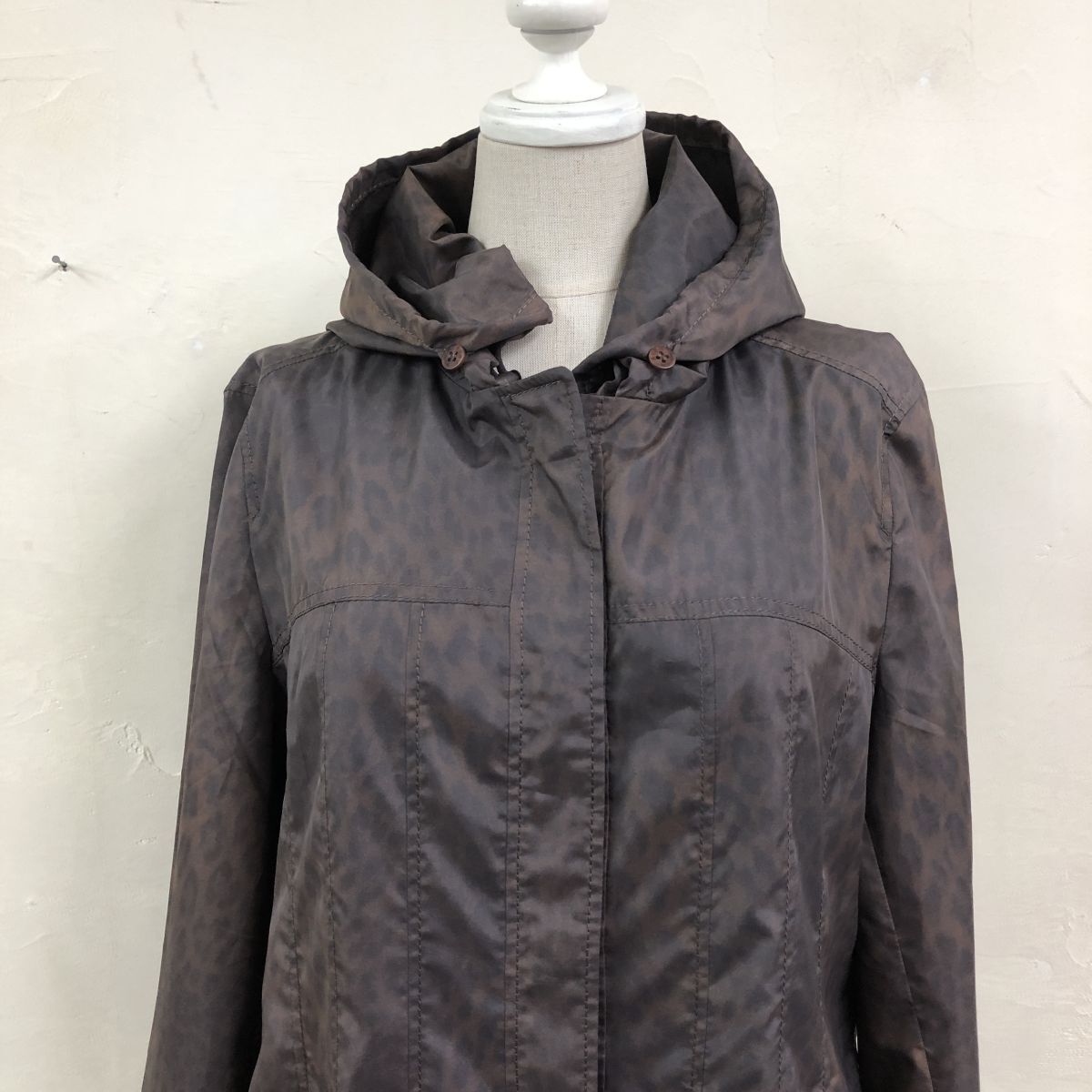 2K1019-G◆美品◆ EVEX KRIZIA エヴェックス クリツィア レオパードライトコート ミドル丈 フード長袖 ◆ size40 ブラウン ポリエステル