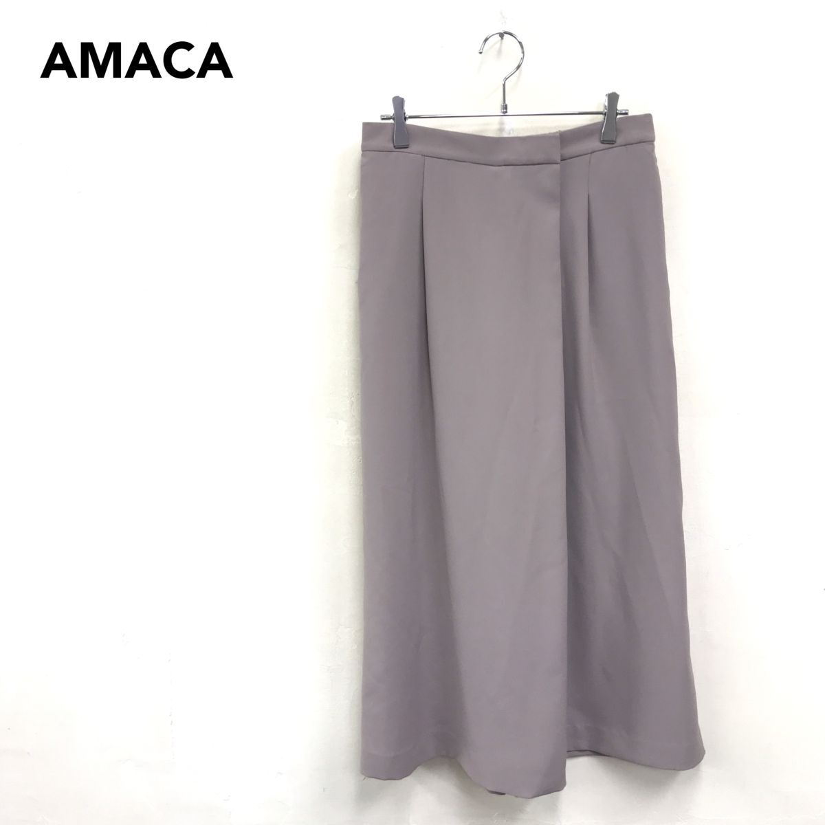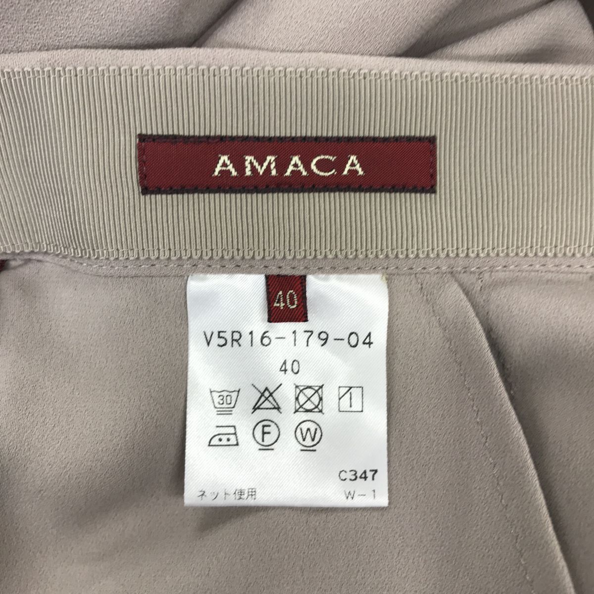 2K1418-Q-N◆AMACA アマカ ワイドパンツ スカンツ ウエストゴム タック 無地 レディース ボトムス◆size 40 ベージュ 茶系 ポリエステル100