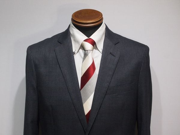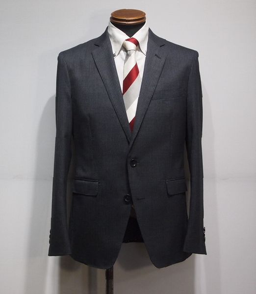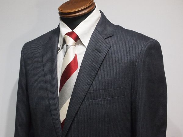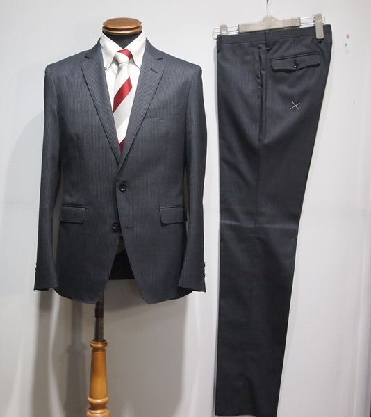 新入荷★秋冬物 総裏ツーパンツ★5650★ノータック 2つ釦ツーパンツ★A7 胸囲96,ウエスト84,身長180★チャコールグレー★ストライプ