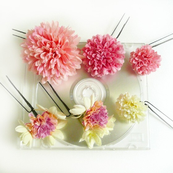 材 料: アートフラワー(マム 紫陽花) ユーピン