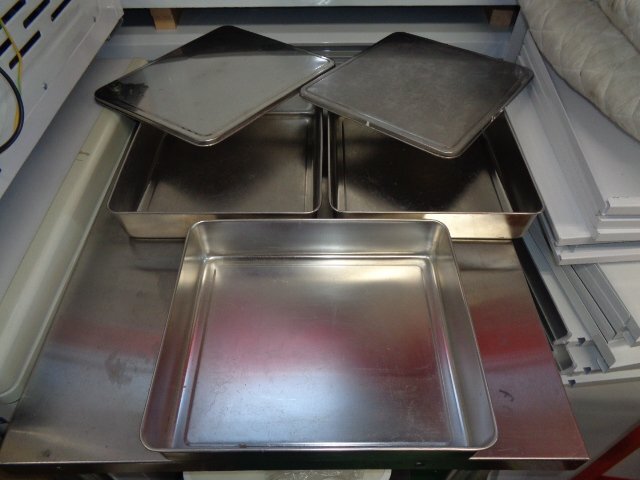 ■クリーニング済み■ 18-8ステンレスホテルパン 【約2/3-65 3枚セット】蓋2枚 H65x325×32 ステンレスバット■東京都葛飾区■28